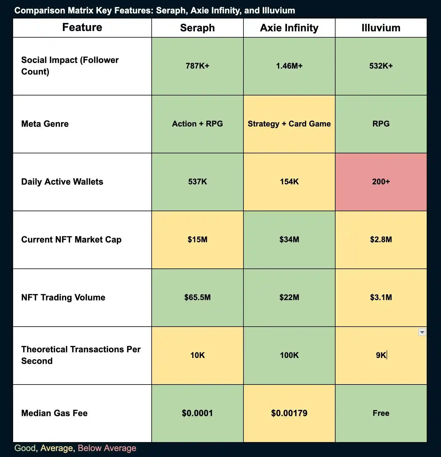 来源:比较矩阵关键特征:Seraph、Axie Infinity 和 Illuvium
