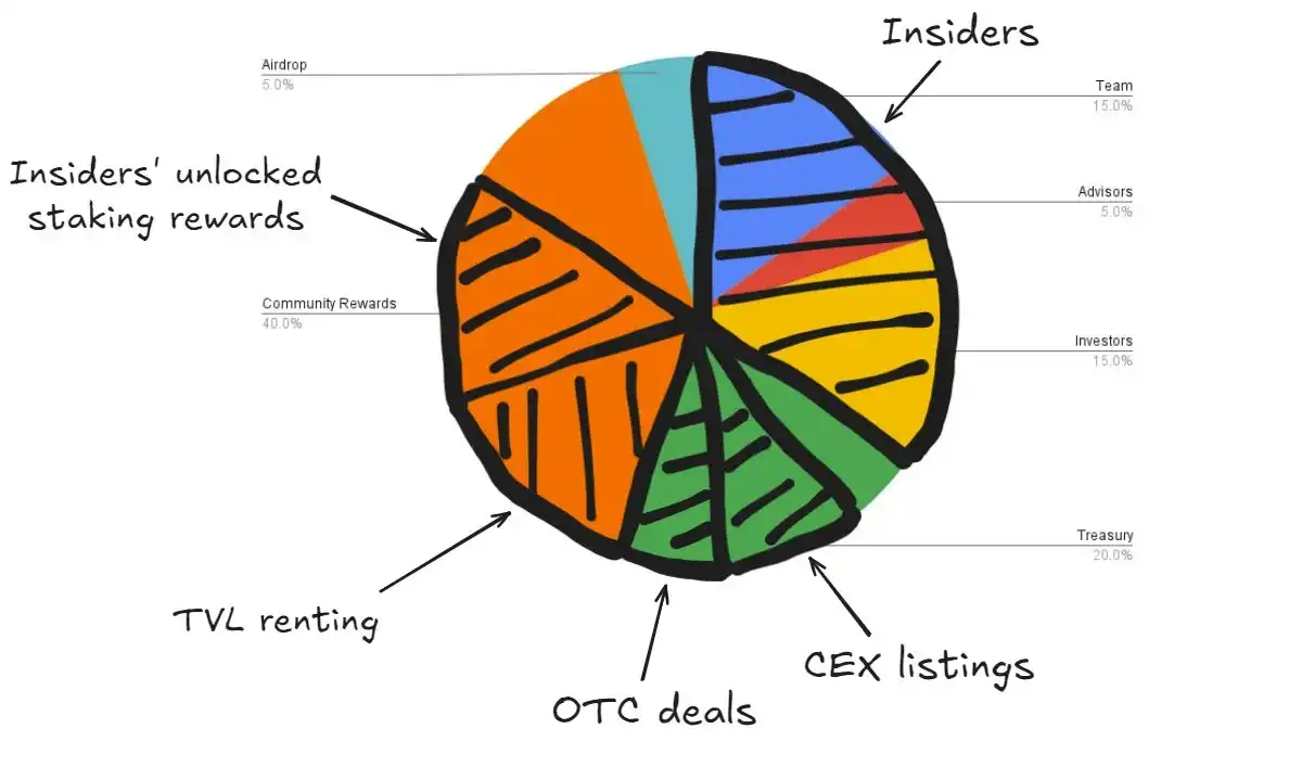 就像代达罗斯给自己设计了监狱一样,这种分配方式决定了许多代币的命运——内部人士将他们的项目困在不透明交易的迷宫中,导致代币的价值从四面八方流失。