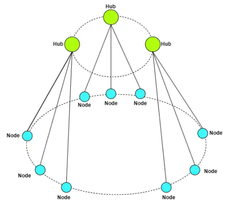 在这种架构中,即使节点数量增加,系统也可以通过添加更多 Hub 来继续平稳运行。