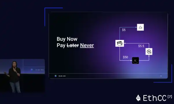 新技术催生了新的市场,PayFi 通过支持「先买不付」(Buy Now, Pay Never)的模式,利用链上金融和即时结算的能力,使链上产生的利润能够实时覆盖即时消费需求。举例来说,用户可以将 50 美元投入链上赚取利息,利息的即时结算和支付即可用来购买一杯「免费的」咖啡。