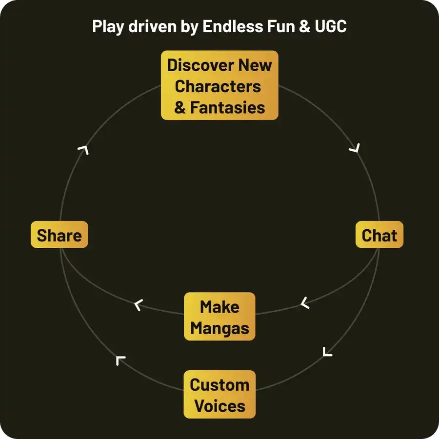 通过一款 AI 幻想角色扮演应用程序创造习惯性需求,这款应用程序的阅读体验类似视觉小说,无限可玩性如模拟游戏,且亲密感如同你的男朋友/女朋友。