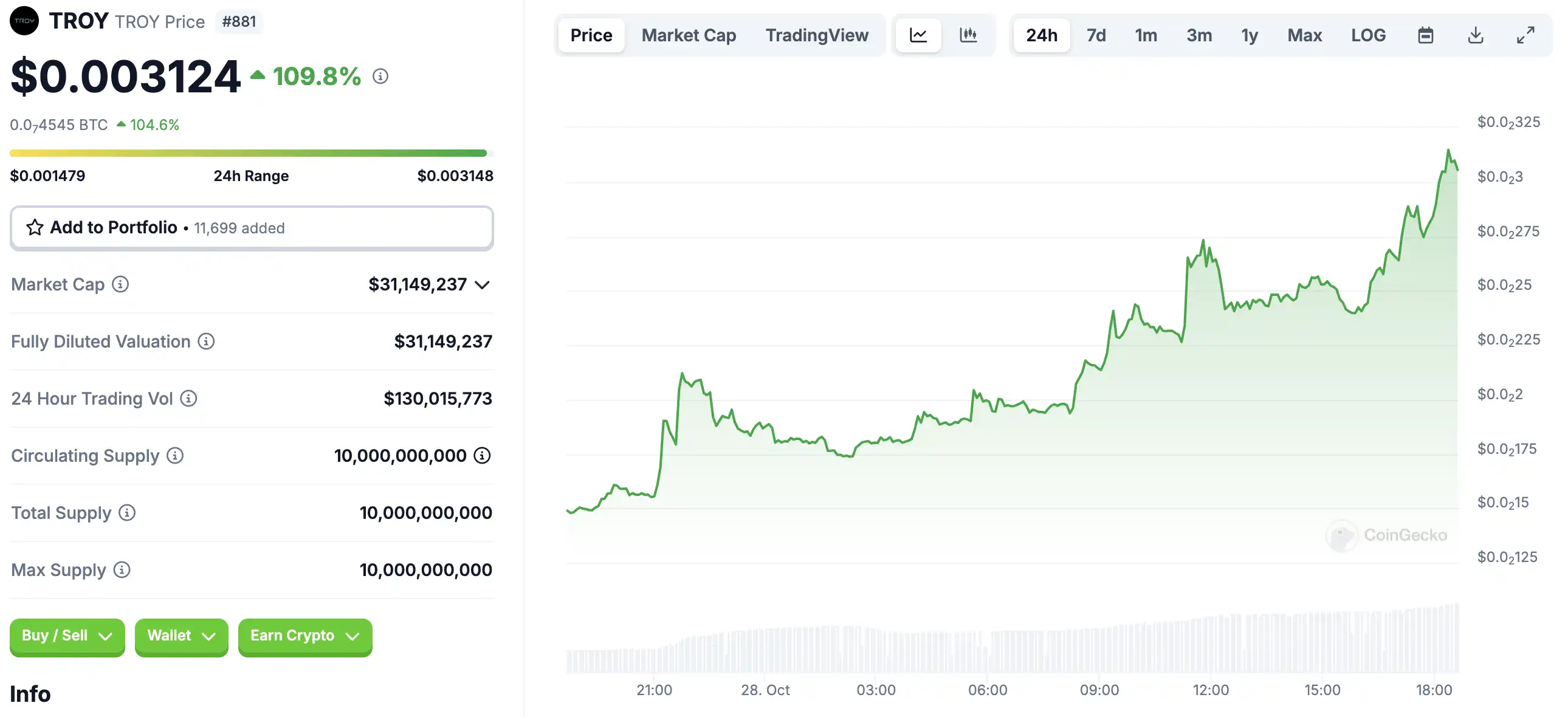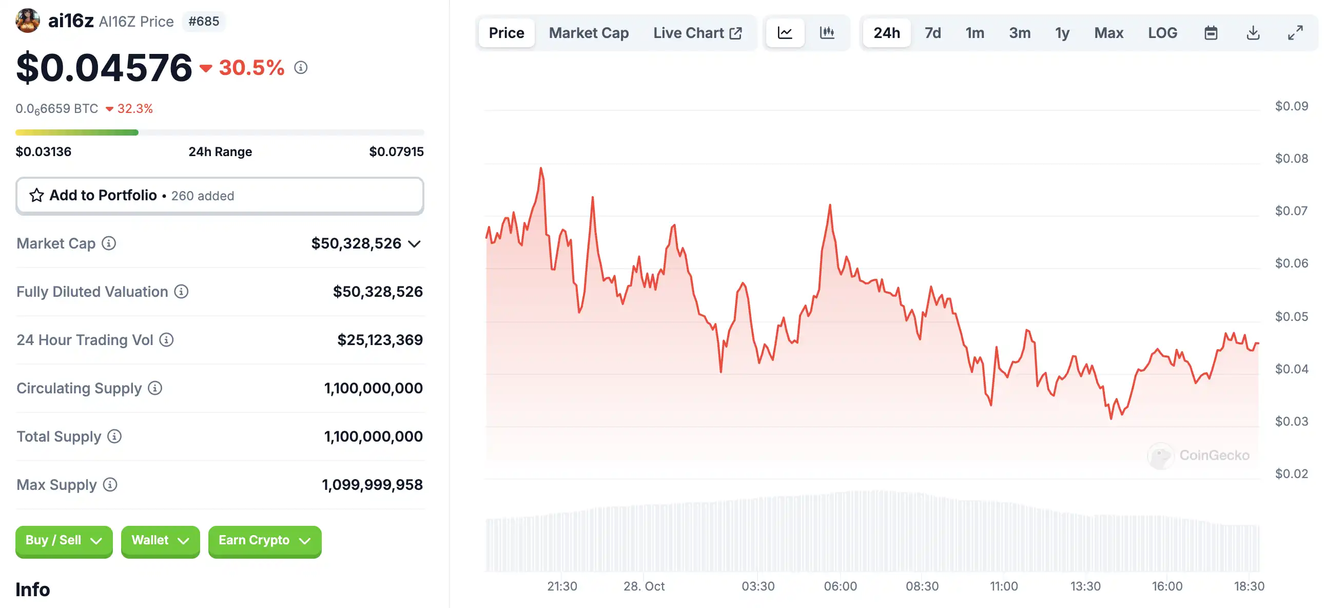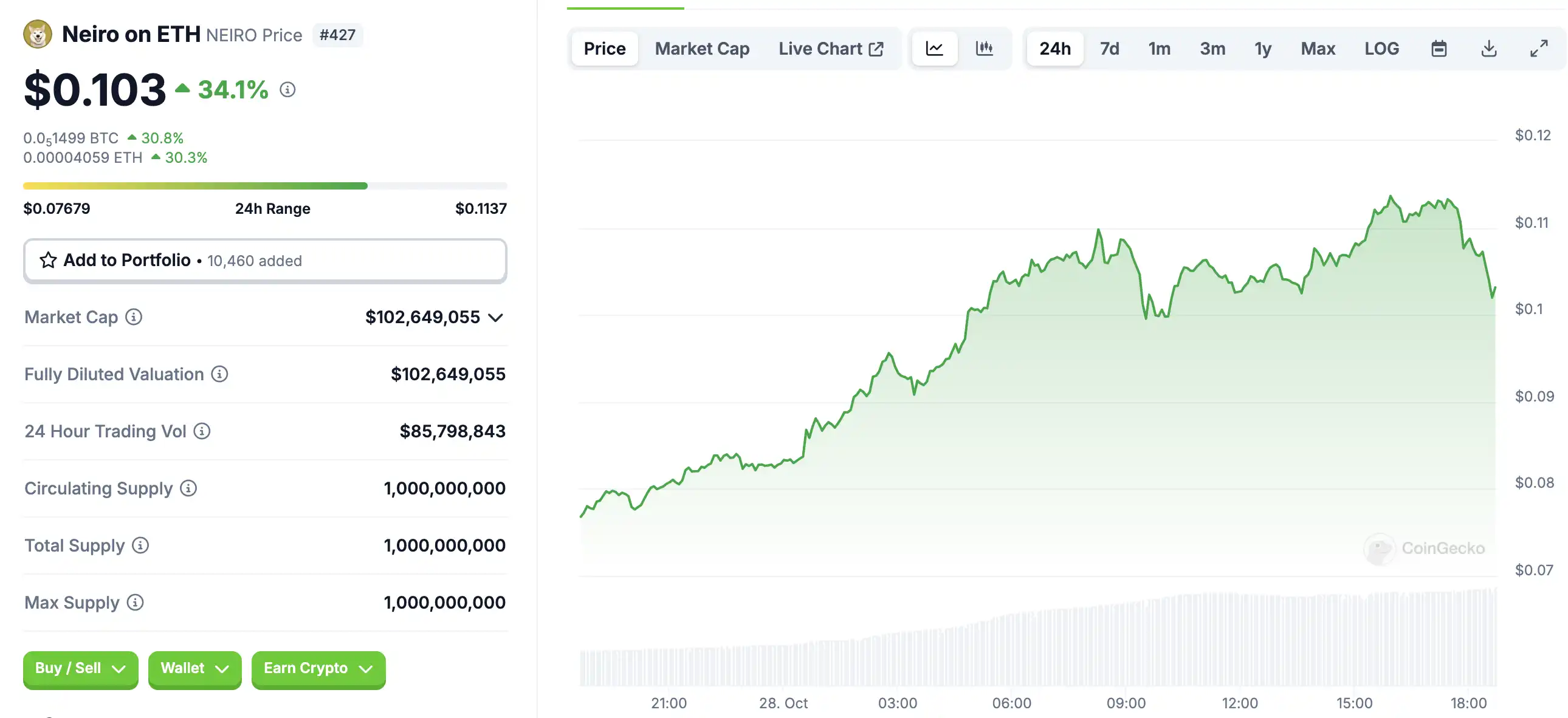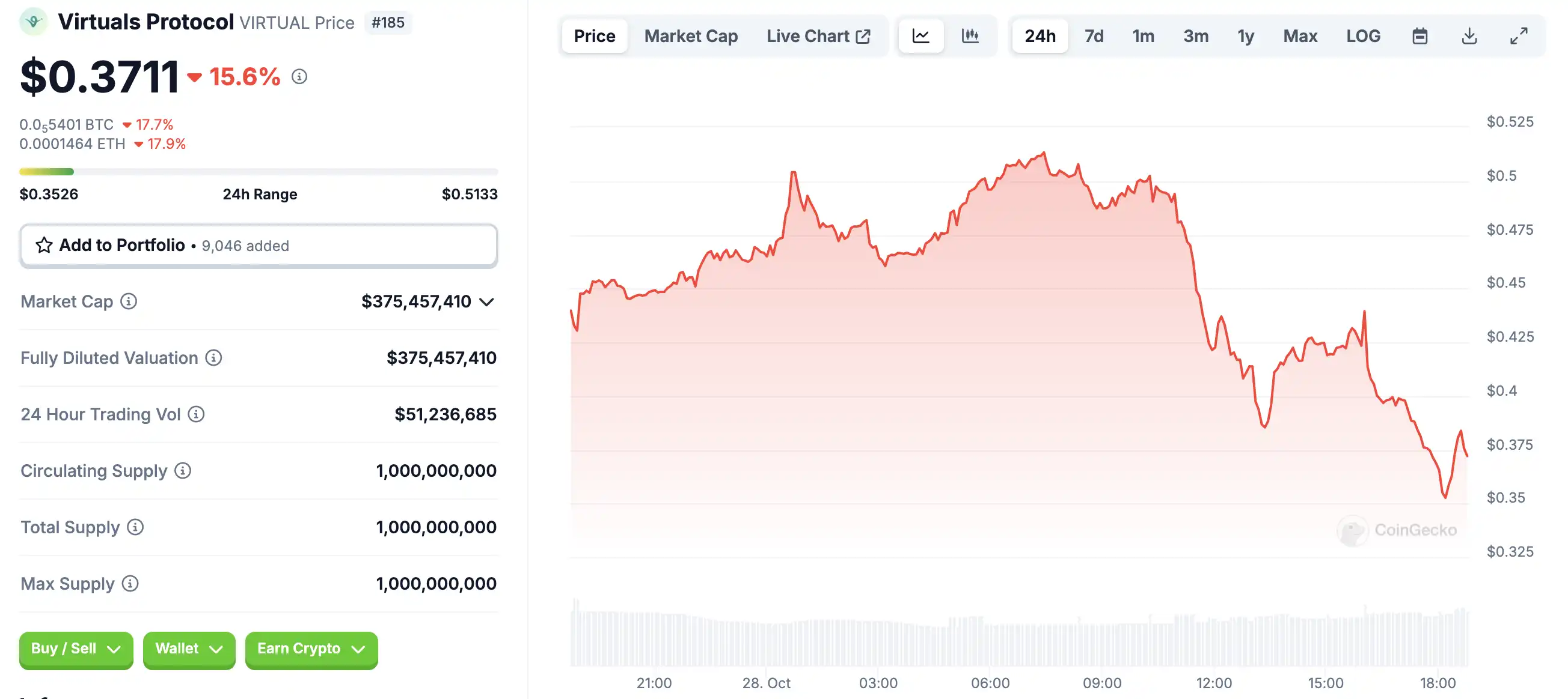 10 月 28 日代币波动情况,按 24 小时交易量筛选并排列