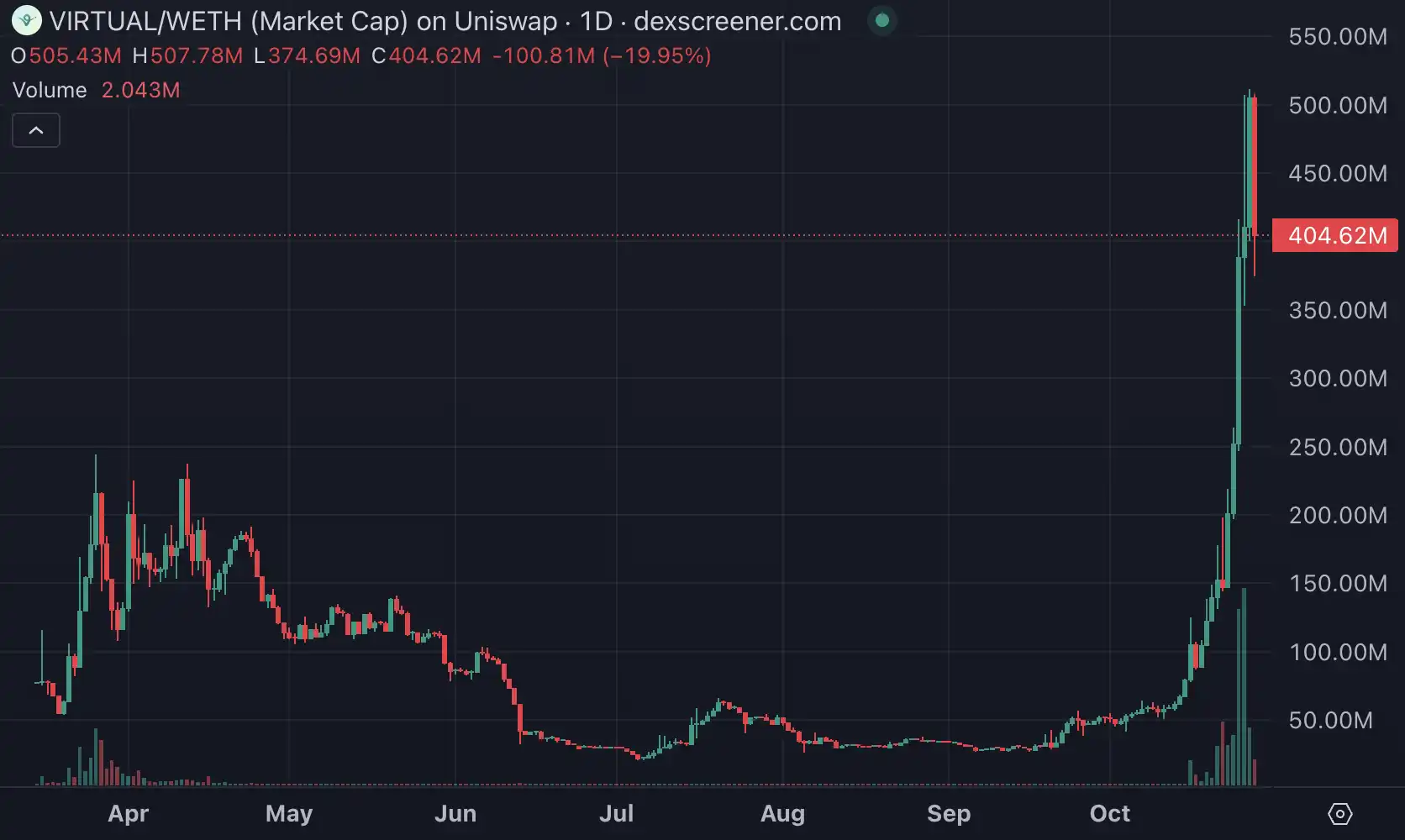 今年 10 月中旬,Virtual Protocol 旗下代币发行平台 IAO 正式上线,允许用户轻松部署 AI Agent,并实现 100% 公平启动的 AI Agent 代币以及允许用户共同拥有该 AI Agent 生成的收入。随后,VIRTUAL 开启了涨服之路。