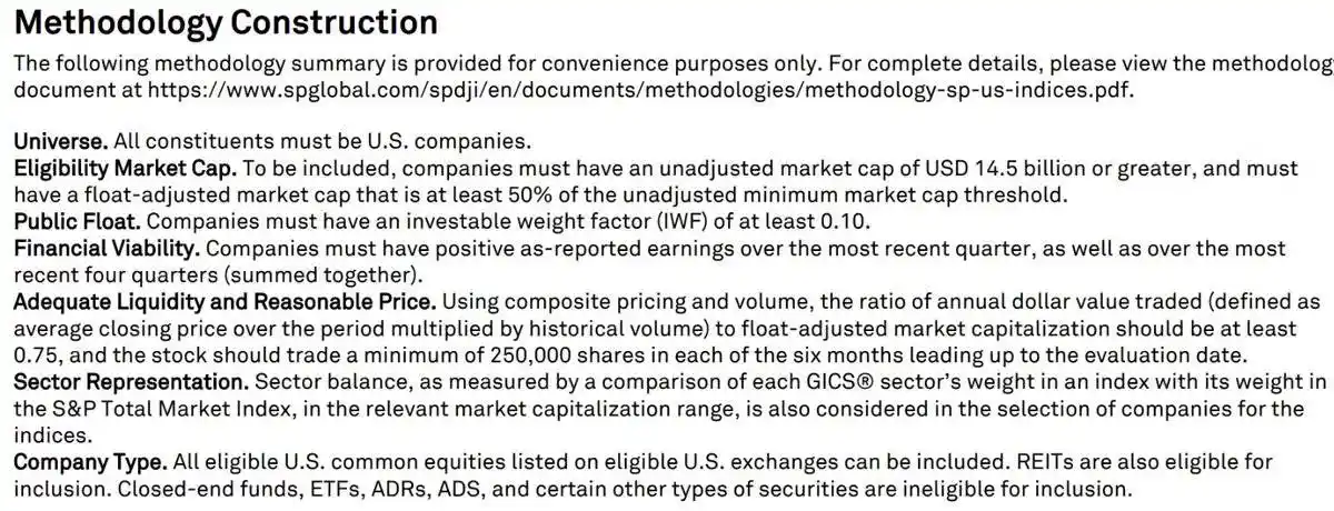 · 公司类型: 所有在合格美国交易所上市的合格美国普通股均可被纳入。房地产投资信托基金(REITs)也有资格被纳入。封闭式基金、ETF、ADR、ADS 及某些其他类型的证券则没有资格被纳入。