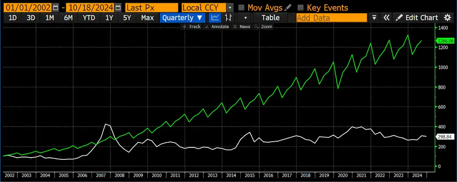 最后一个人民币不会显著贬值的原因是,与中国再通胀措施同步,美国无论大选结果如何,都将推行「弱美元」工业政策。虽然特朗普和哈里斯试图强调他们的分歧,但实质上,他们都将通过印钞并向关键美国工业部门注入资金来刺激经济。