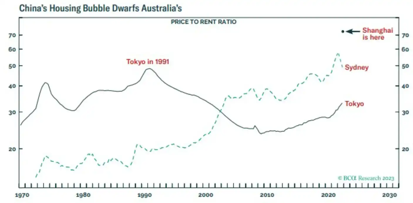 北京在 2010 年代中期开始对抑制房地产市场口气强硬,但实际戳破泡沫却伴随着一系列风险。每一家主要的国有银行和工业公司都与房地产市场有着巨大的关联。许多银行贷款的资产基础都是发放给家庭或开发商的住宅贷款。生产空调、钢铁、水泥等商品的公司的最大客户群体之一就是房地产开发商。
