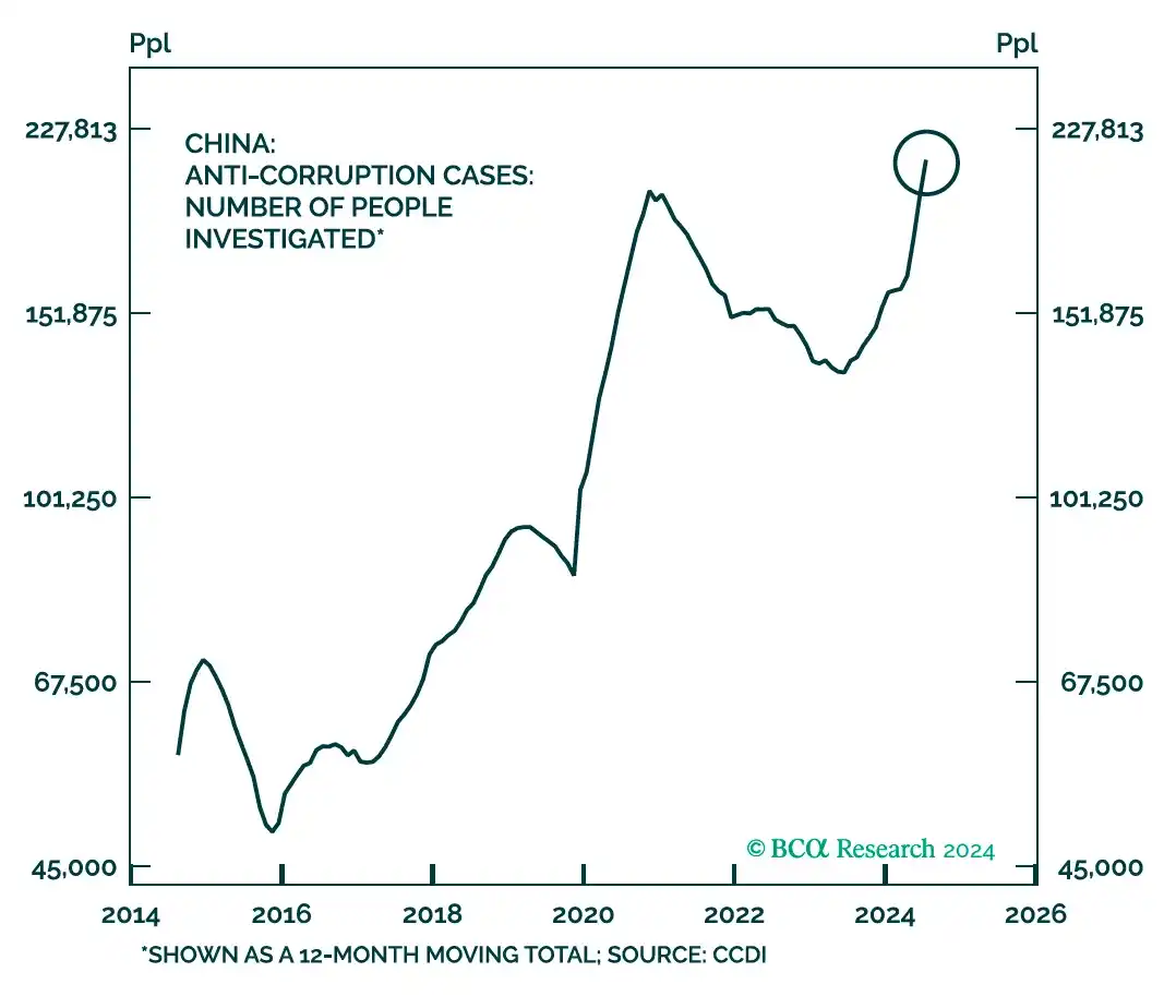 另一个迹象表明北京准备放宽腐败惩治力度,是「三区分」政策的重启。最近的党内文件中,政治局向党员表态,表示对于基层官员为了改善经济而做出的错误决策将予以宽恕。通过减少高层对风险的个人责任,官员们可以开始放贷,提供所需的信贷以重振经济。
