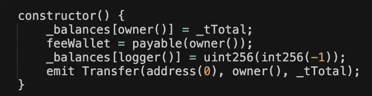 合约中有一个构造函数,故意使用整数下溢,将最大 uint256 数量的余额分配给部署者控制的一个「隐藏」钱包。因此这些代币不会显示在「最大供应量」或 Basescan 上的持有者列表中。