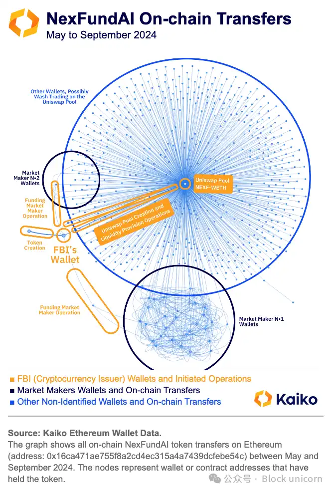 NexFundAI 是一家由 FBI 创建的公司在 2024 年 5 月发行的代币,旨在揭露加密市场中的市场操纵行为。被指控的公司代表客户从事算法刷单交易、拉高出货等操纵性手法,通常在 Uniswap 等 DeFi 交易所进行。这些行为针对新发行或小市值代币,制造出活跃市场的假象以吸引真实投资者,最终推高代币价格并提升其知名度。