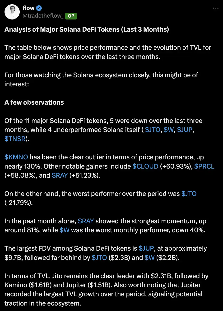 2. 过去 3 个月 Solana DeFi 代币分析,@tradetheflow_