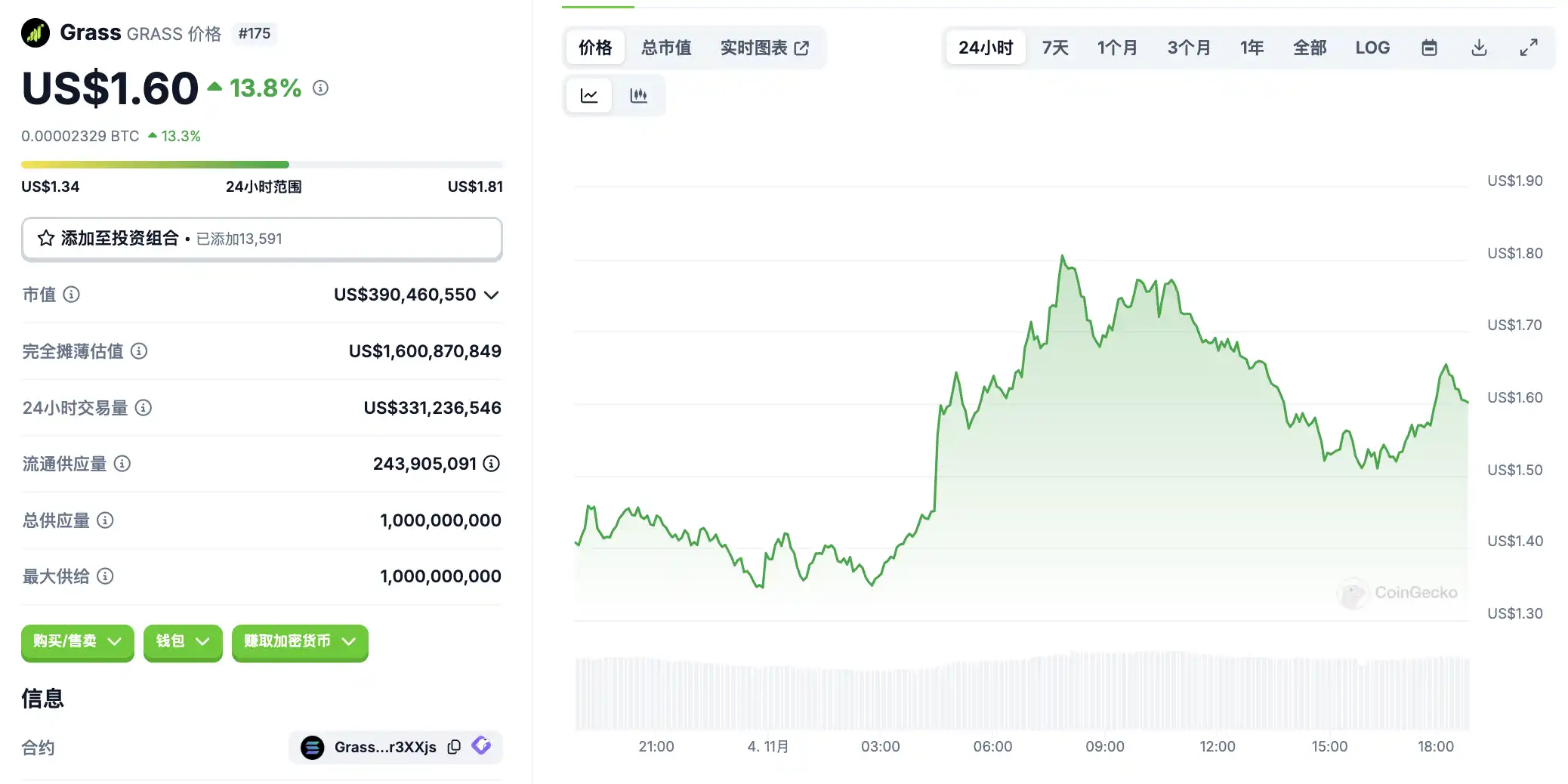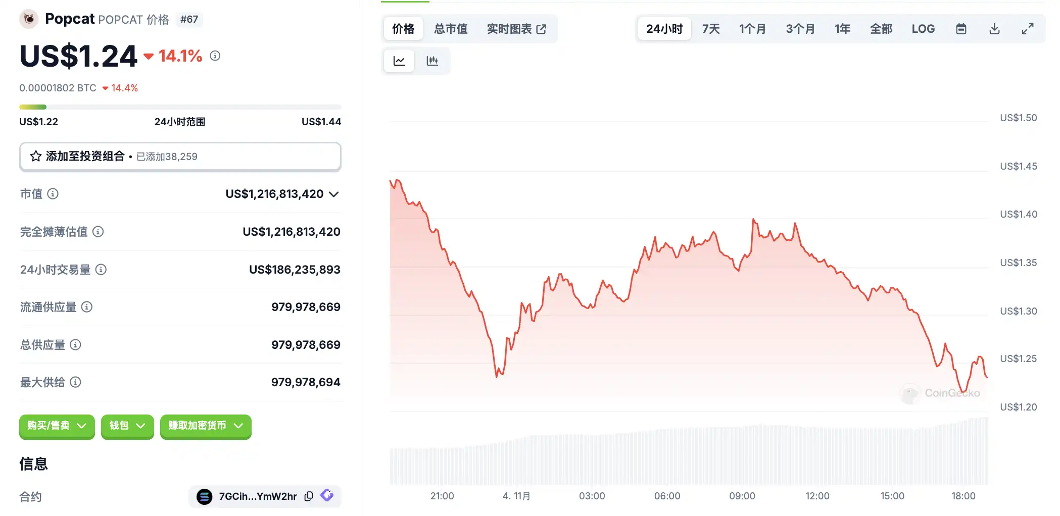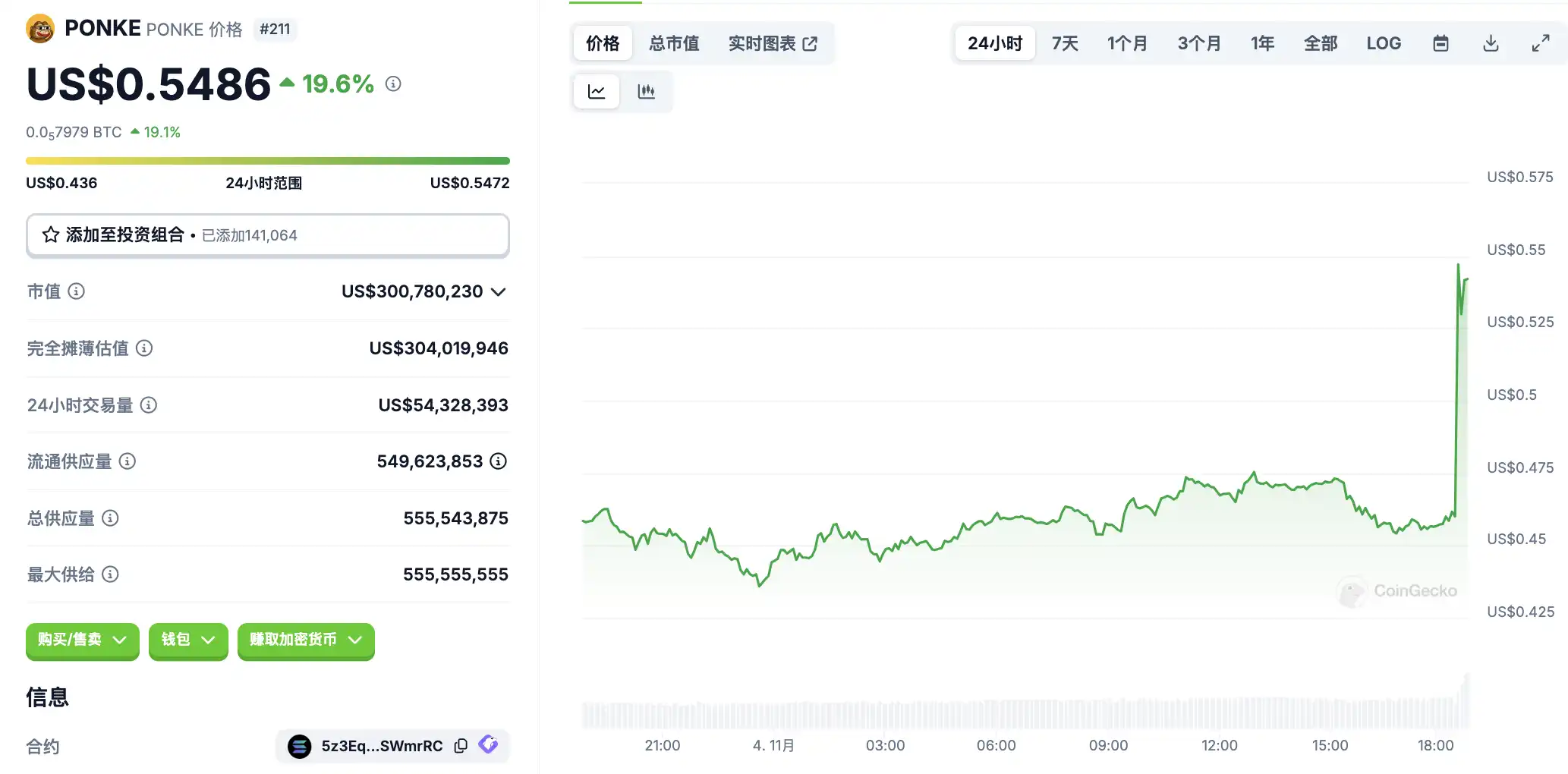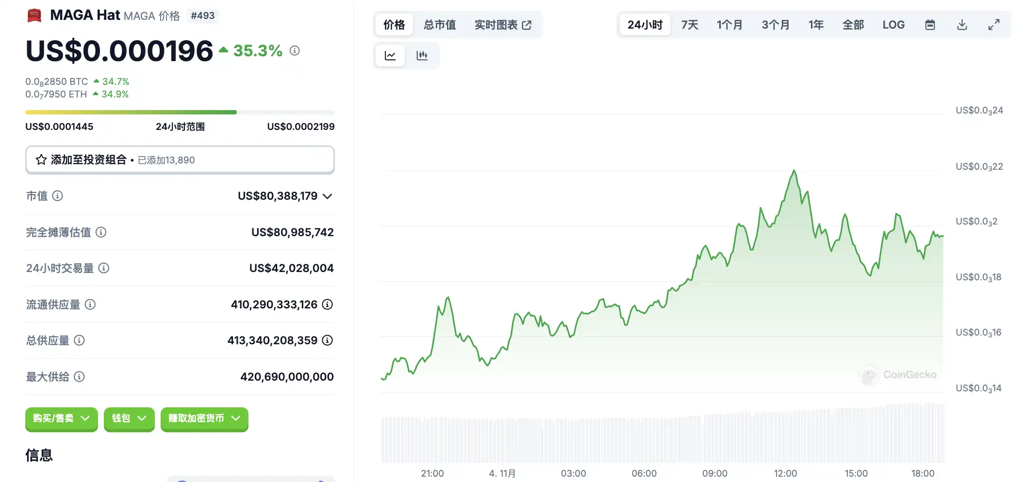 11 月 4 日代币波动情况,按交易量筛选并排列