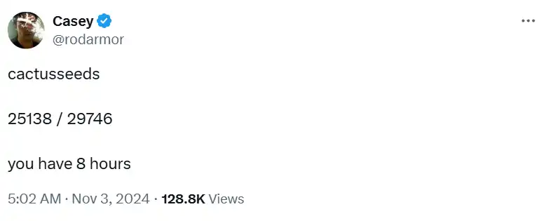 在他给出进一步的提示之前,评论区已经有不少玩家领悟到了这是一个限时 8 小时的解谜游戏,这也是推文的最后一句话。而奖品,正是推文的第一句话「cactusseeds」。