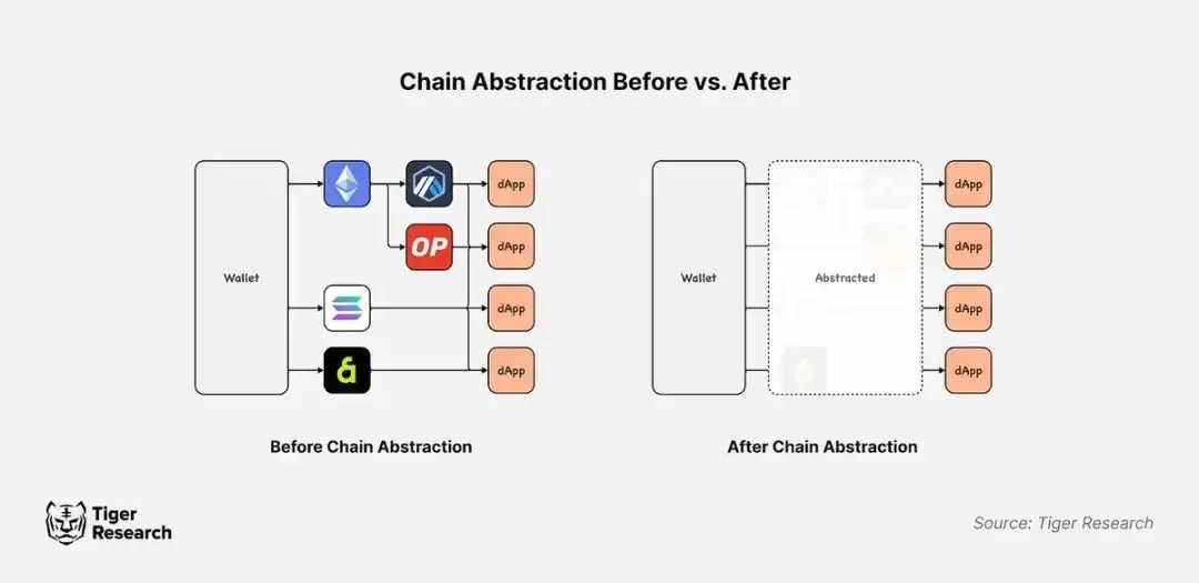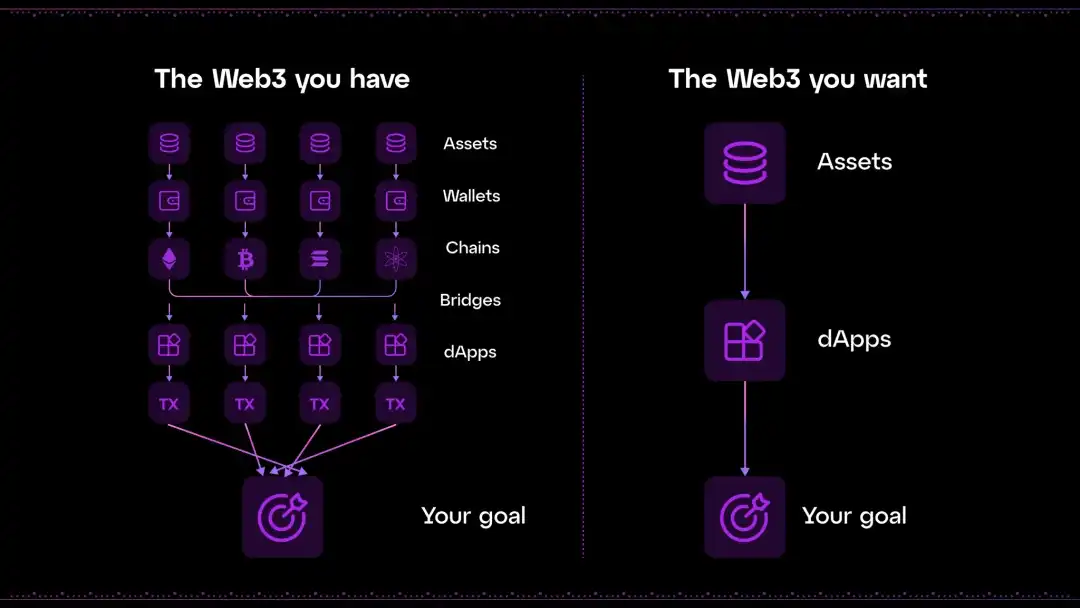 而链抽象清除了这一额外障碍,使得用户可以直接用整个链上余额去完成 dApp 使用或者转账等——用户再也没有「跨」的概念。