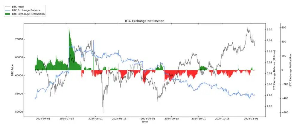 4. 交易所净头⼨整体呈现整体 BTC 少量流⼊,ETH 暂⽆持续流出。