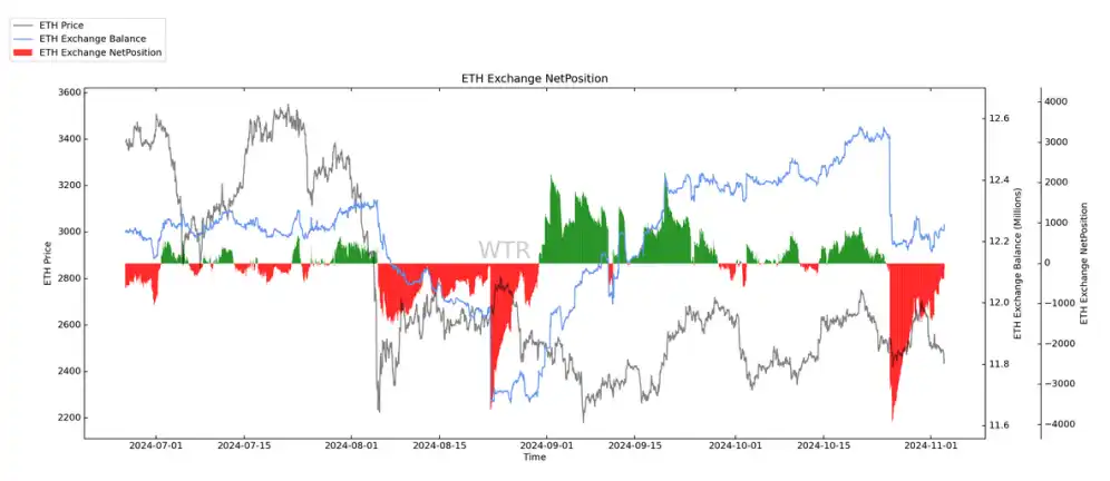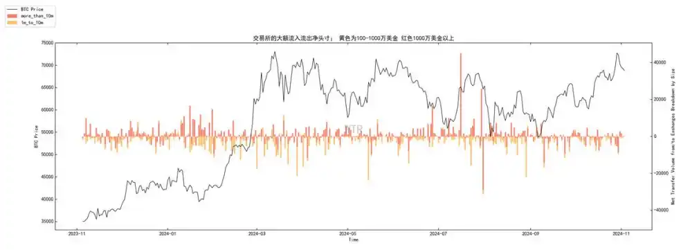 交易所资⾦⼤额流向显⽰,⾼净值参与者购买意向不⼤,在这个时期还是相对萎靡。