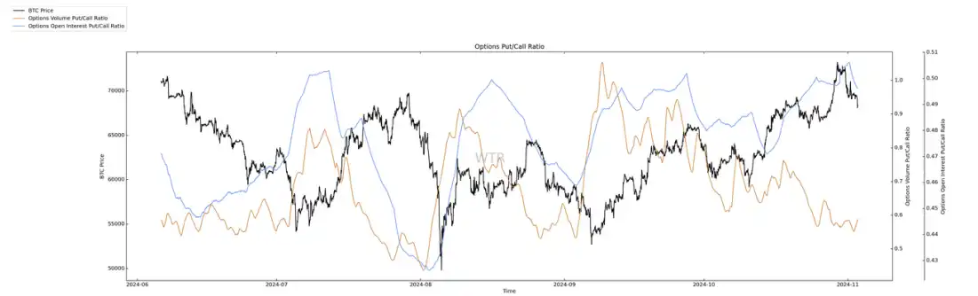 期权成交量少量减少。看跌期权⽐例少量减少。