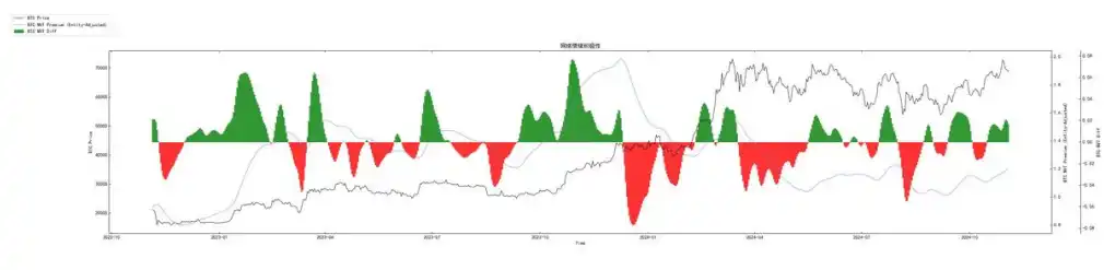 1. 当前,BTC 的吸⾎上升,类似于 2022-2023 年美联储持续加息进⾏时。
