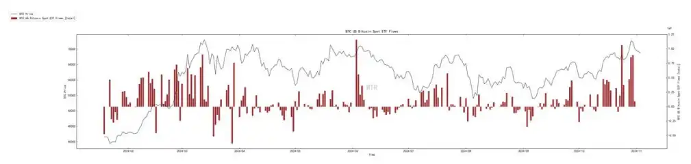 10. 彭博⾼级 ETF 分析师 Eric Balchunas 称,BTC ETF 的持有总量有望在在 12⽉中旬超过中本聪的持有量(约 110 万 BTC),如果特朗普获选,可能会看到 FOMO(害怕错失机会)情绪激增,加速这⼀进程。