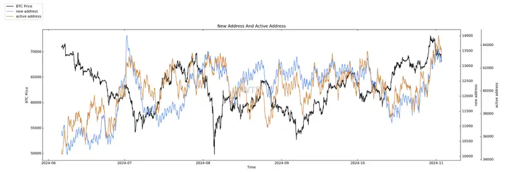 这张可以更清楚地看到巨鲸们的购买状态,⼤概是最近半年来最积极的⼀次购买时期。⽬前巨鲸们的购买意愿较⾼。总体数据显⽰未来⻓期相对乐观。