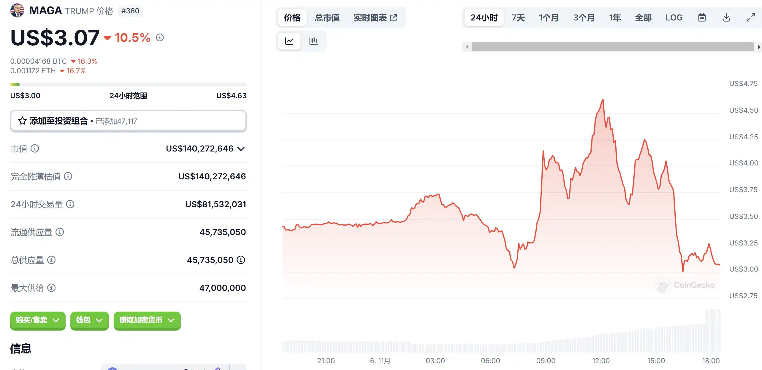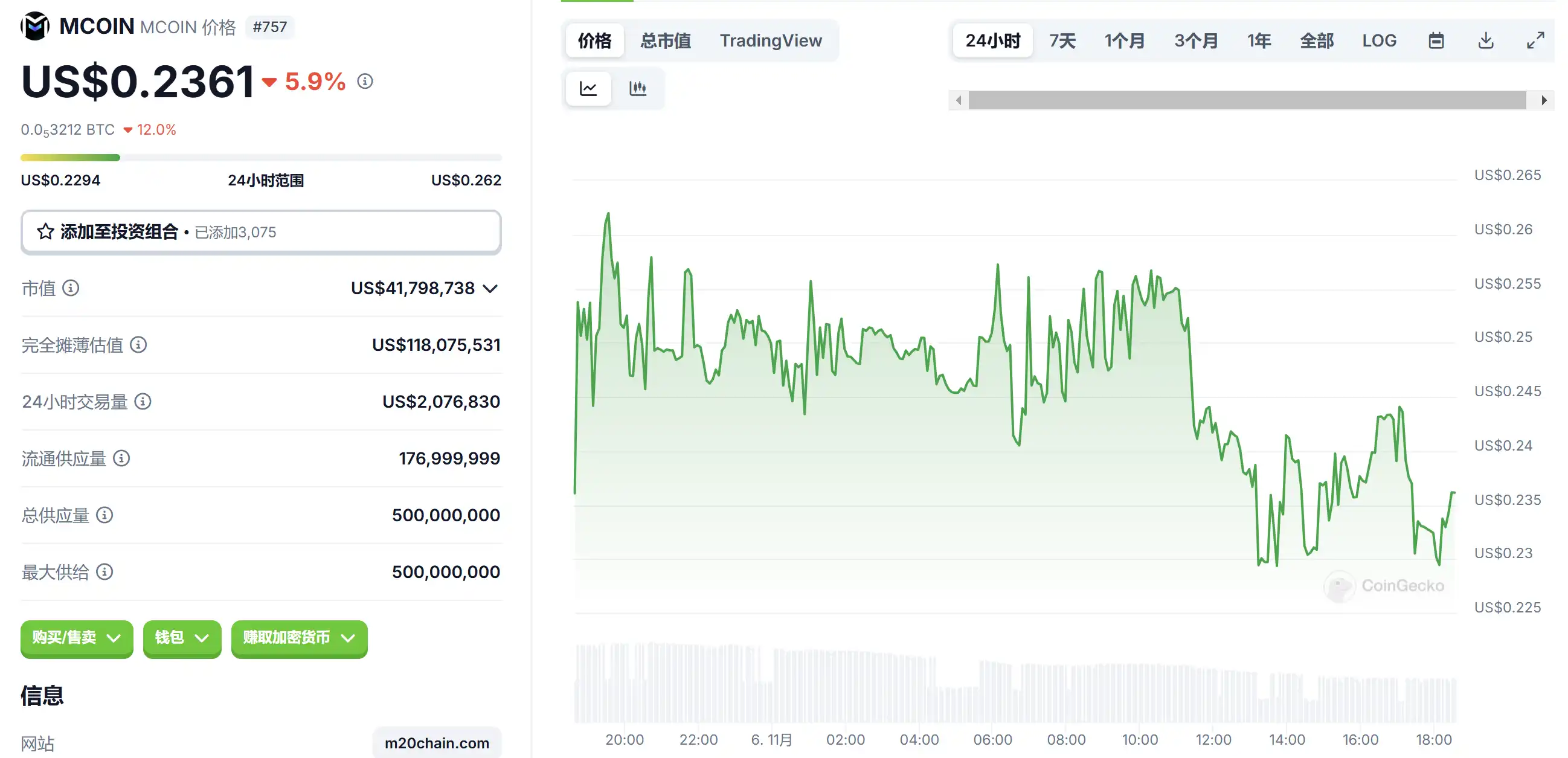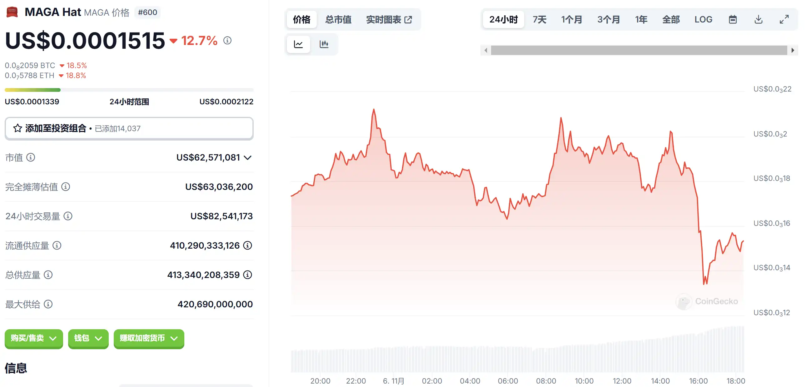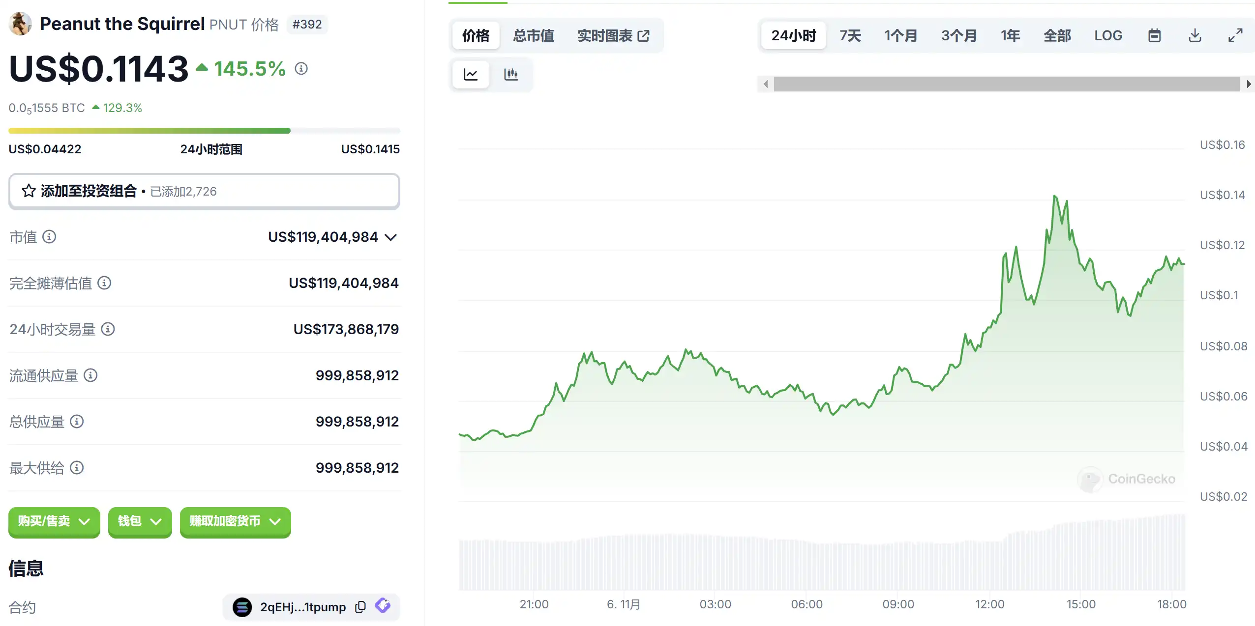 11 月 6 日代币波动情况,按交易量筛选并排列