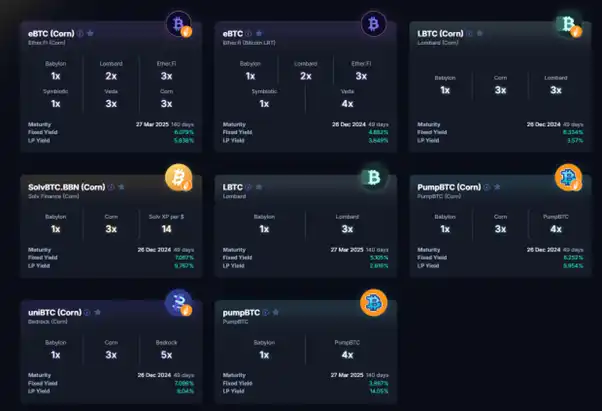 ● BTCFi 的币本位 Buff 收益来自于:类比 Babylon LRT 奖励 BTC 扩展链奖励 ETH 链 LRT 一揽子收益(好比 Pendle 与 Swell);