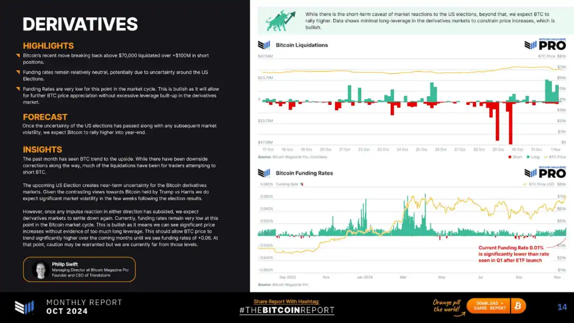 · 资金费率保持相对中性,可能是由于美国大选的不确定性。