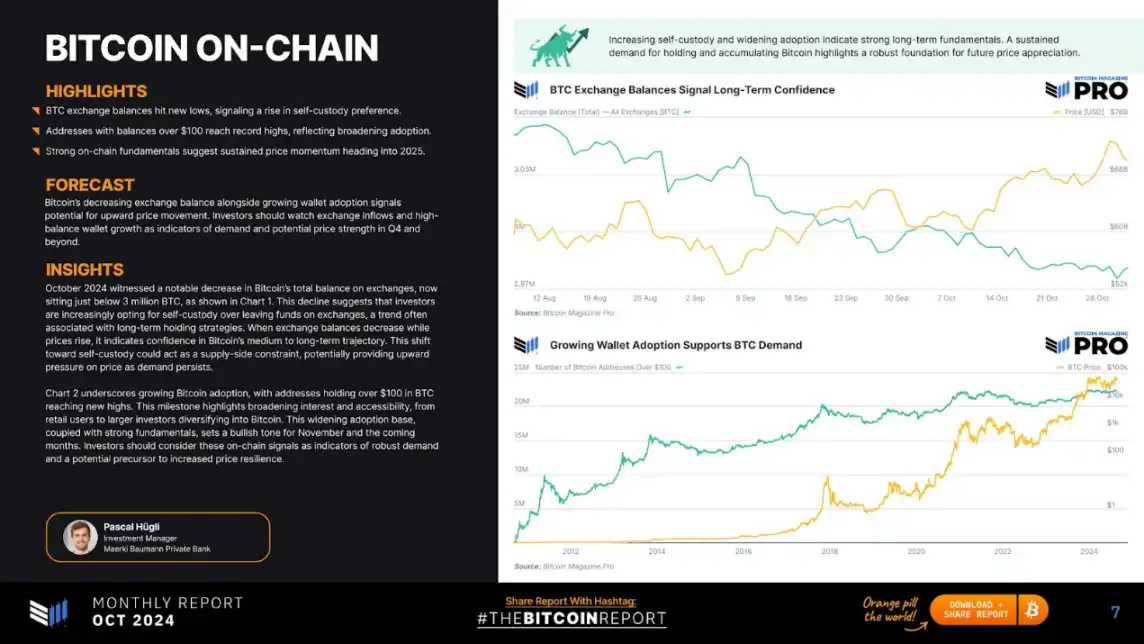 Bitcoin Magazine Pro 发文对 10 月份比特币进行了回顾,并讨论一些关键话题。包括比特币的交易所余额下降、ETF 资金流入超过 50 亿美元,以及可能在未来一个季度重新定义比特币价值的乐观预测。以下为报告详情。