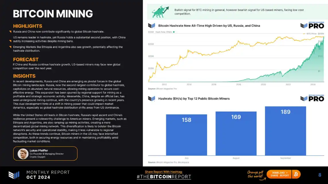 如果中国和俄罗斯的算力继续增长,美国矿工可能会在明年面临新的全球竞争。