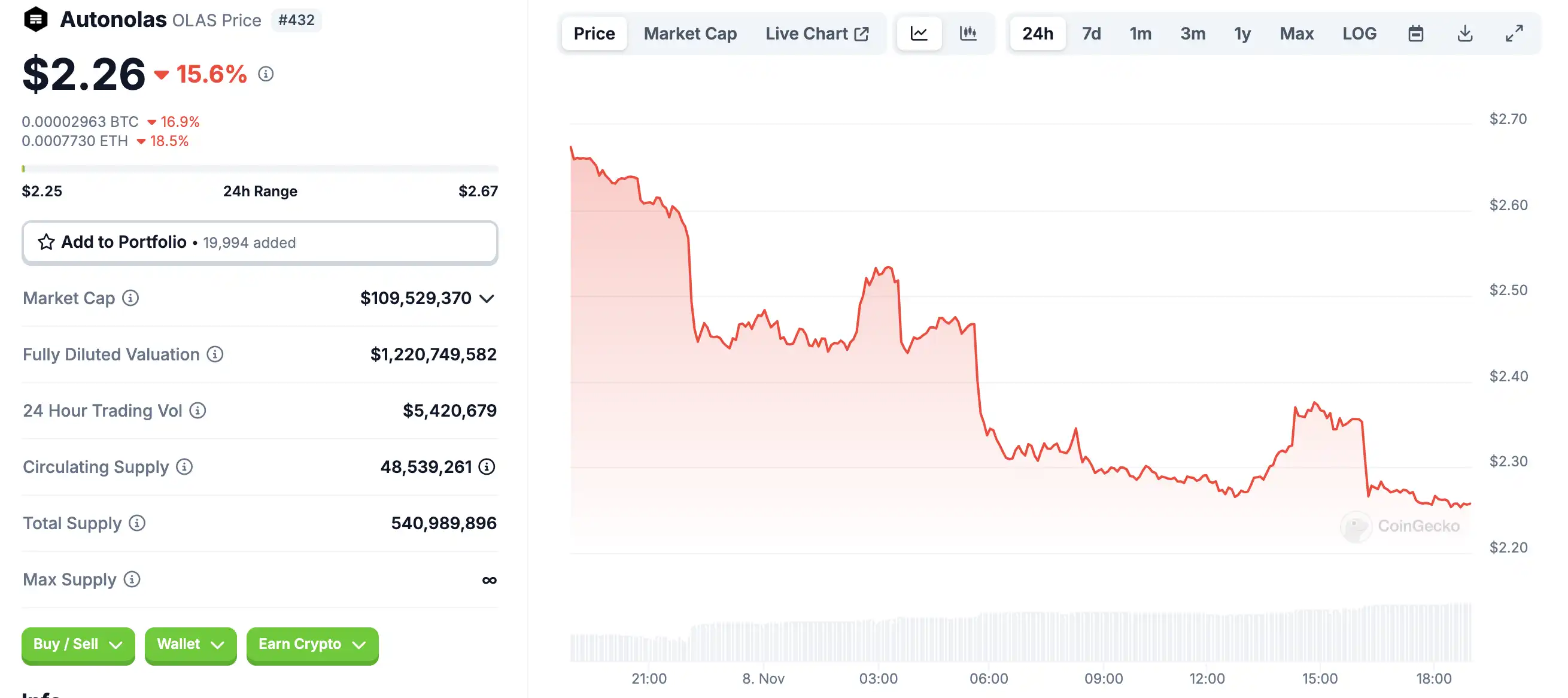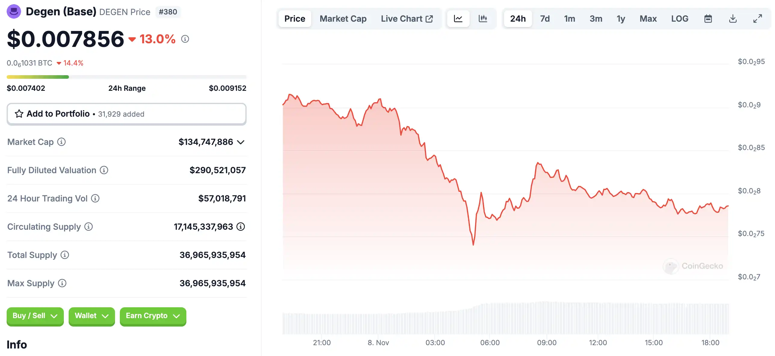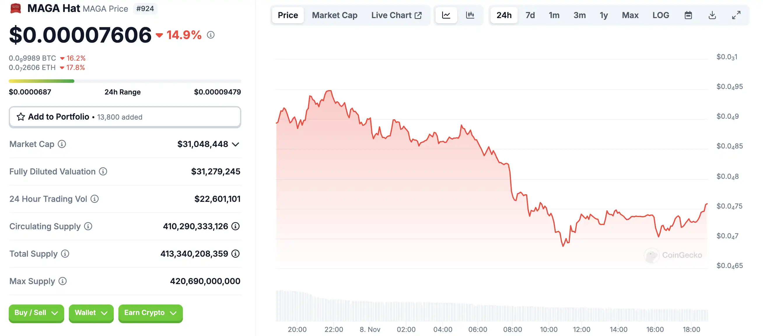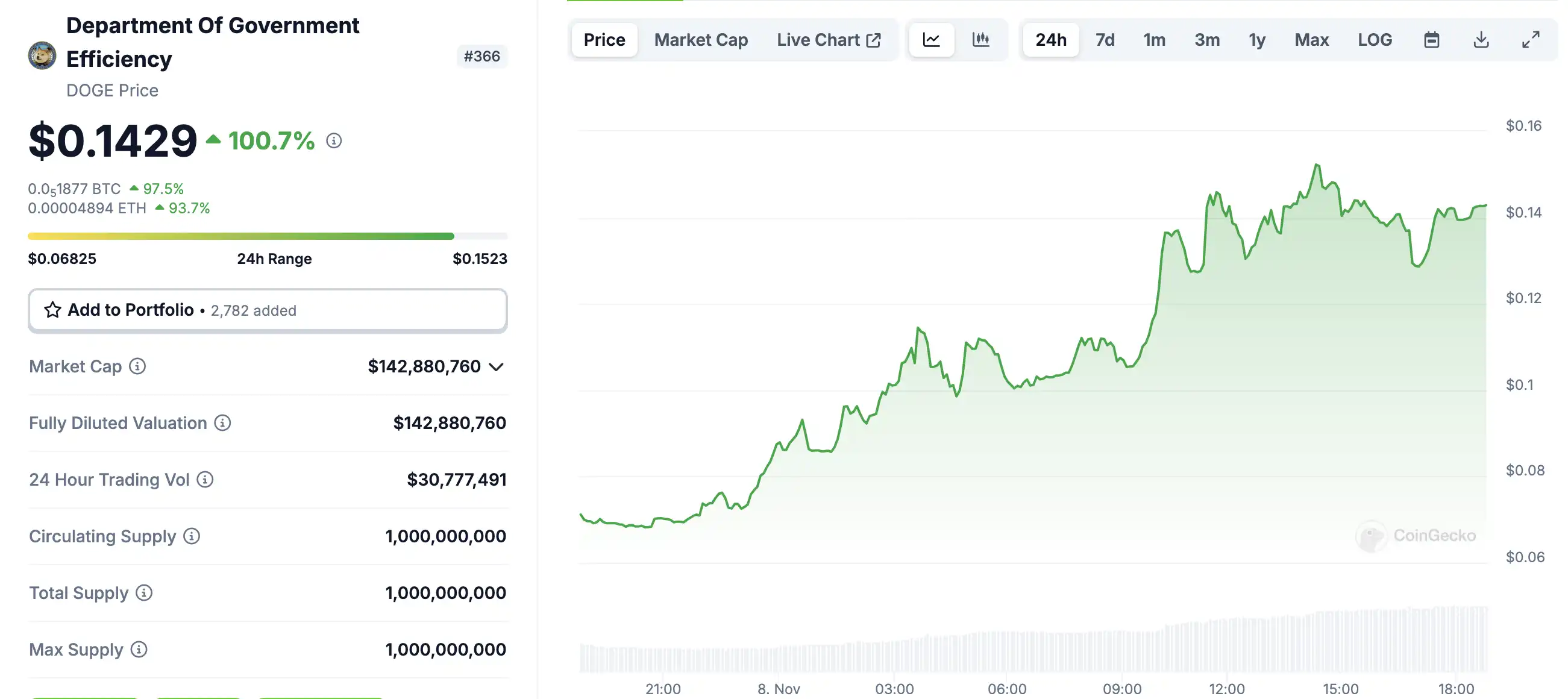11 月 7 日代币波动情况,按交易量筛选并排列