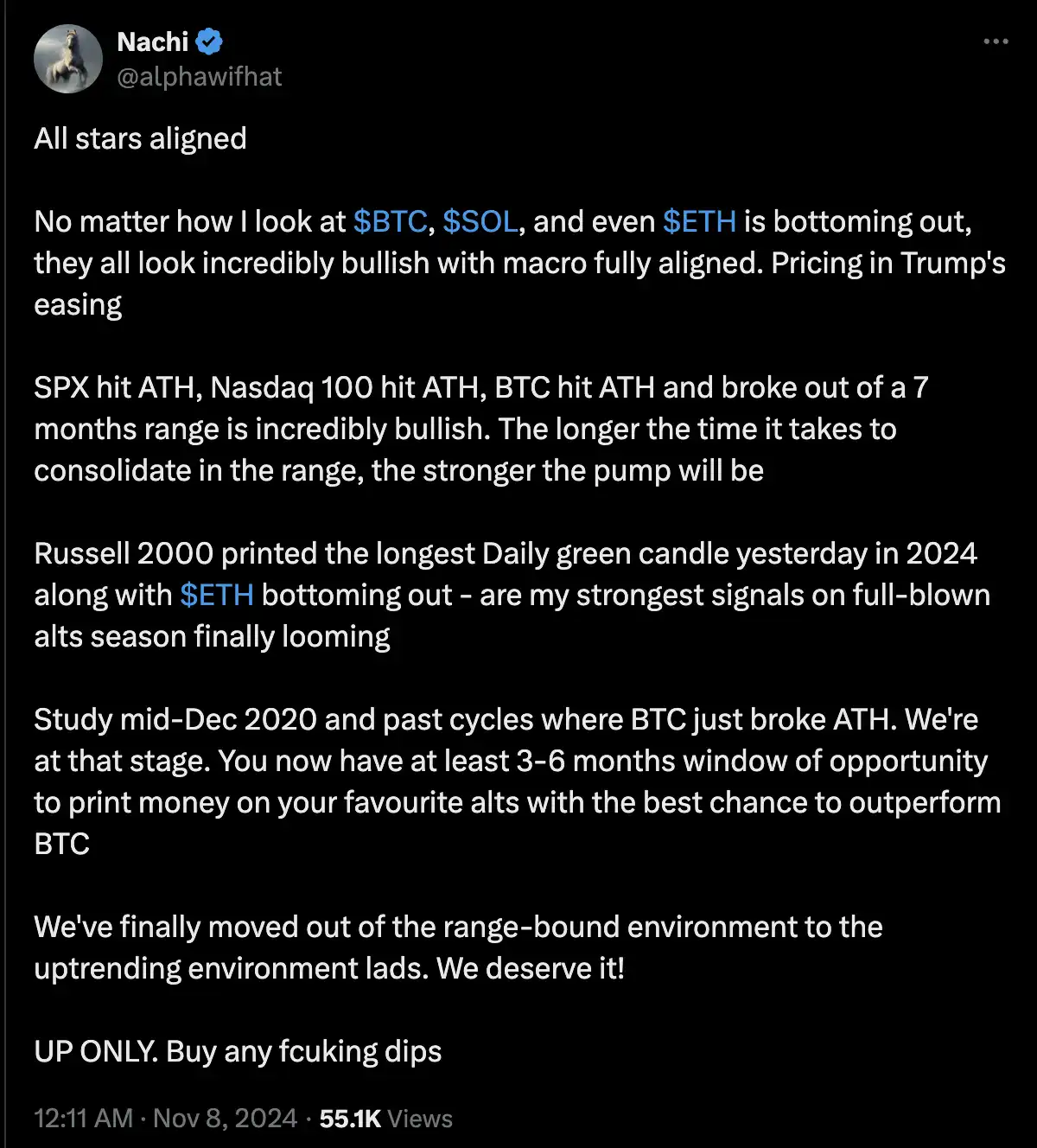 2. 宏观上完全一致看涨 BTC ETH SOL,@alphawifhat