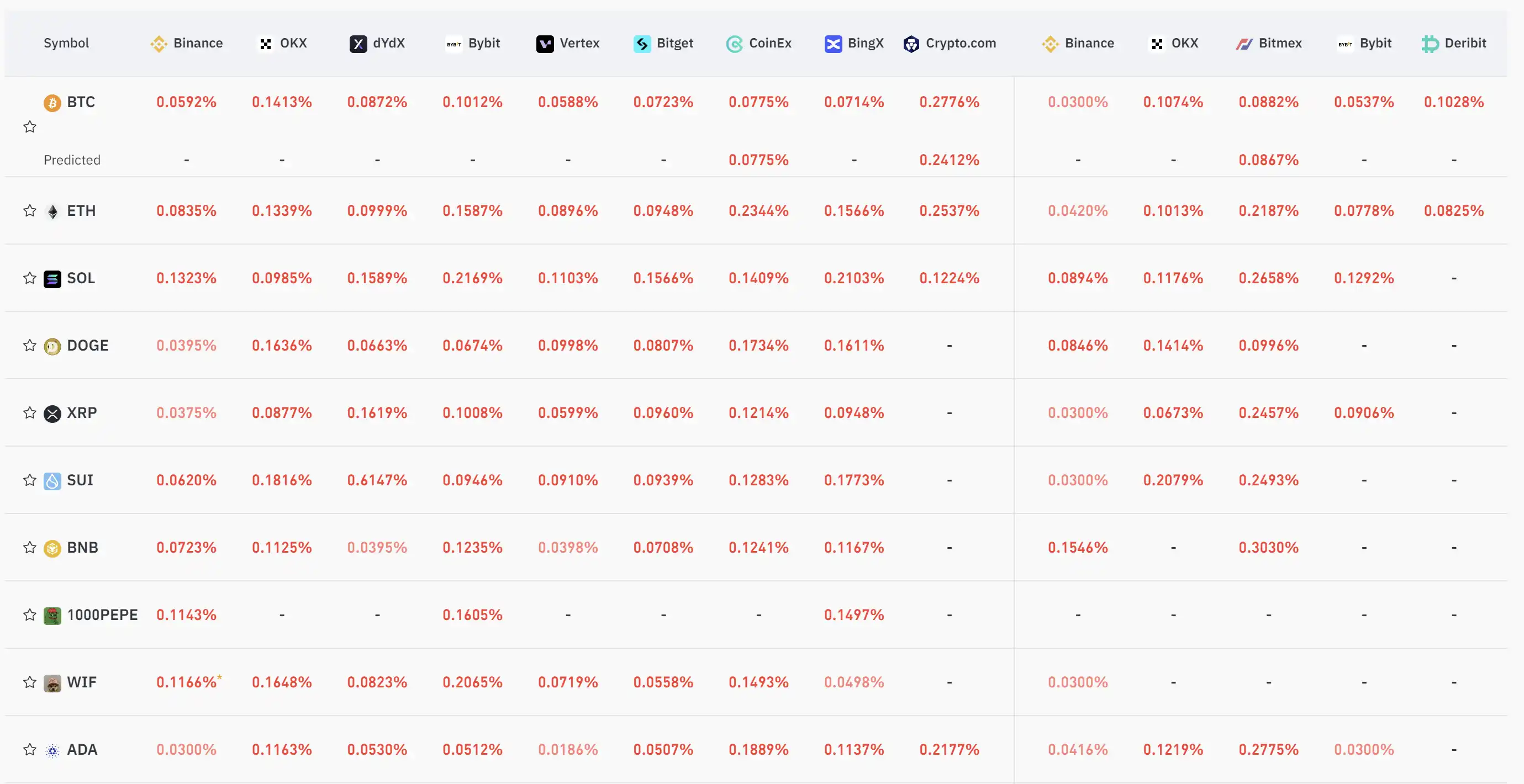 每日市场整体资金热度(根据资金费率反映)与代币解锁