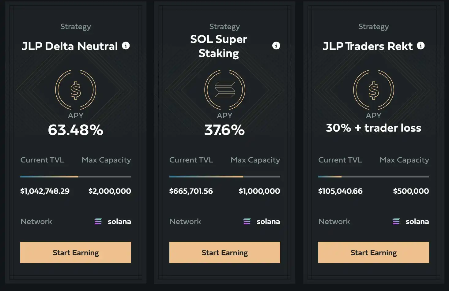 由经验丰富的量化专家和交易员打造,他们让复杂的策略对所有人开放。其中最受欢迎的策略之一是「SOL 超级质押」,基于 Drift 和 Jupiter 的 JLP,年收益率可达 37%。