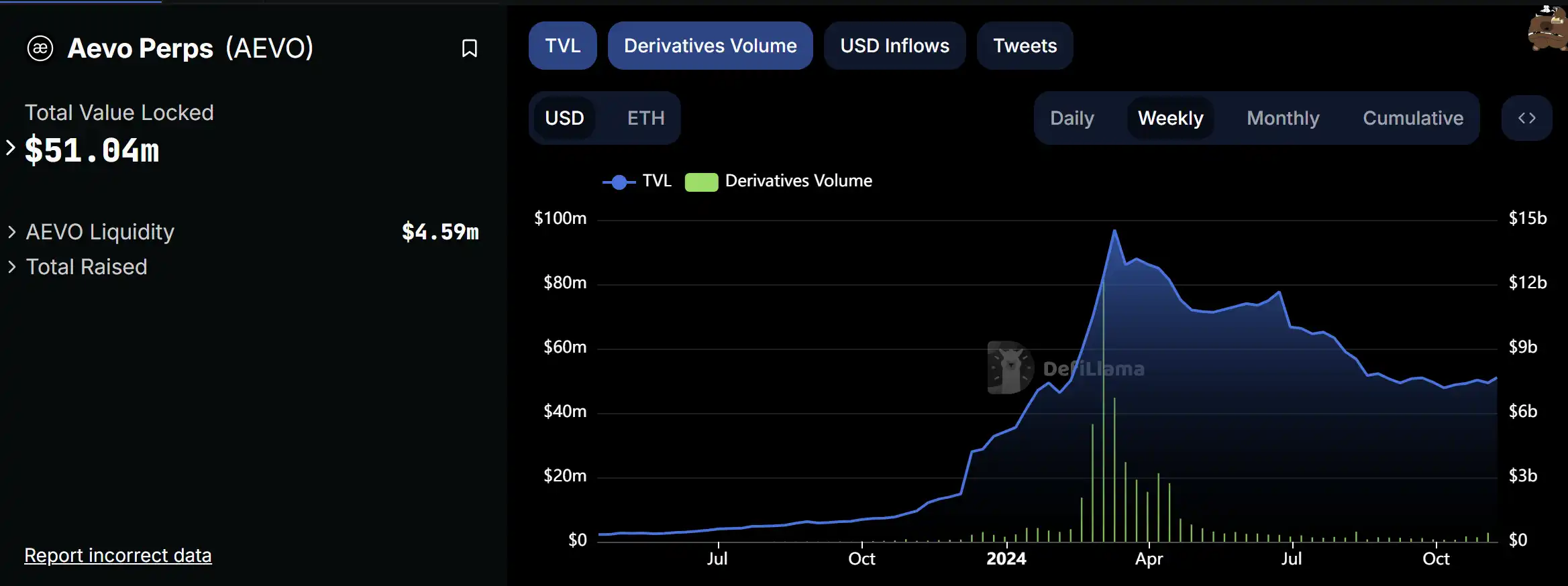 然而,Arkham 做 perp 的运营方式和其他 perp 起家别无二致。通过积分或手续费折扣的模式吸引首批用户,但是这些用户只是把 perp DEX 作为矿来挖,并不是真正的有效流量。我们不妨来看下今年 3 月的 perp 之光 Aevo。