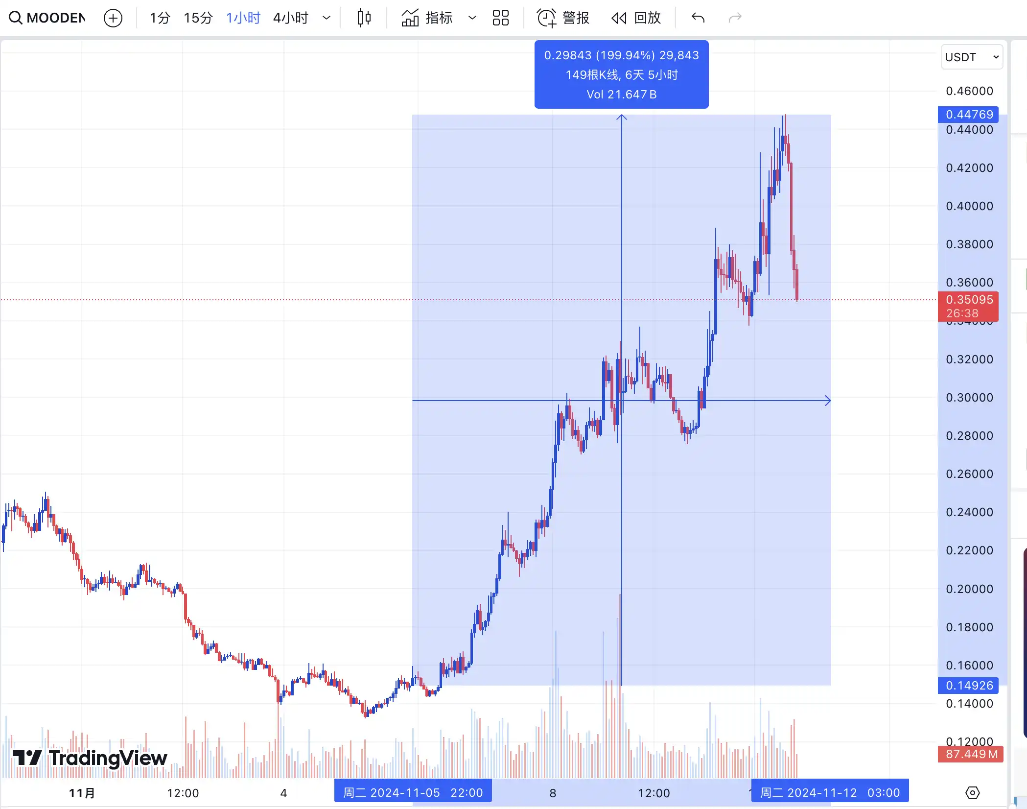 MooDeng 是泰国动物园中的一只可爱的河马,泰国驻东京大使馆和化妆品公司丝芙兰泰国都与其互动。此外,CNA(ChannelNewsAsia)、US TODAY、NBC 等知名媒体近日也频繁对 Moo Deng 引发的热议发表专题报道,也曾成为 pump 上发射的市值排名第一的代币。从加密市场对 Trump 竞选活动产生反应,即 11 月 5 日的美盘时间以来,最高上涨 199.94%,市值现报 3.51 亿美元。