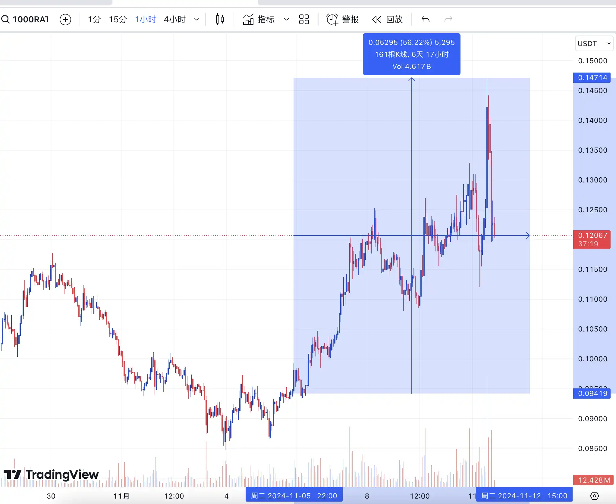 RATS 是 Brc-20 上的铭文,也被许多人称为是「最出圈的 meme」,SATS 和 RATS 上线 Binance 之后,铭文的热度也逐渐回落。随着短暂的冲高后逐渐下跌。在 6 月的「反 VC 狂潮」中,RATS 大涨 70%,但最终也没有延续涨势。从加密市场对 Trump 竞选活动产生反应,即 11 月 5 日的美盘时间以来,最高上涨 56.22%,市值现报 1.21 亿美元。