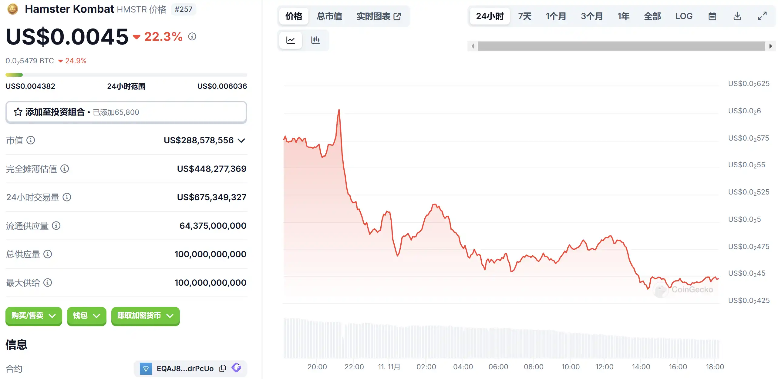 11 月 11 日代币波动情况,按交易量筛选并排列