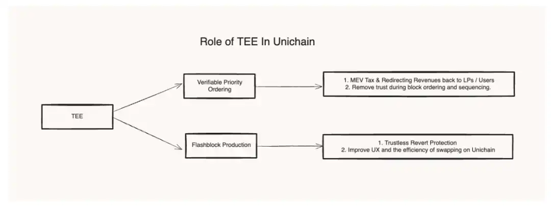 · 同时,由于 TEE 提供的完整性属性,Unichain 通过确保交易顺序不受任何第三方的影响来缓解和重组 MEV。可验证的优先级排序还确保 MEV 公平,并有可能将 MEV 收入重新分配给用户和流动性提供者。