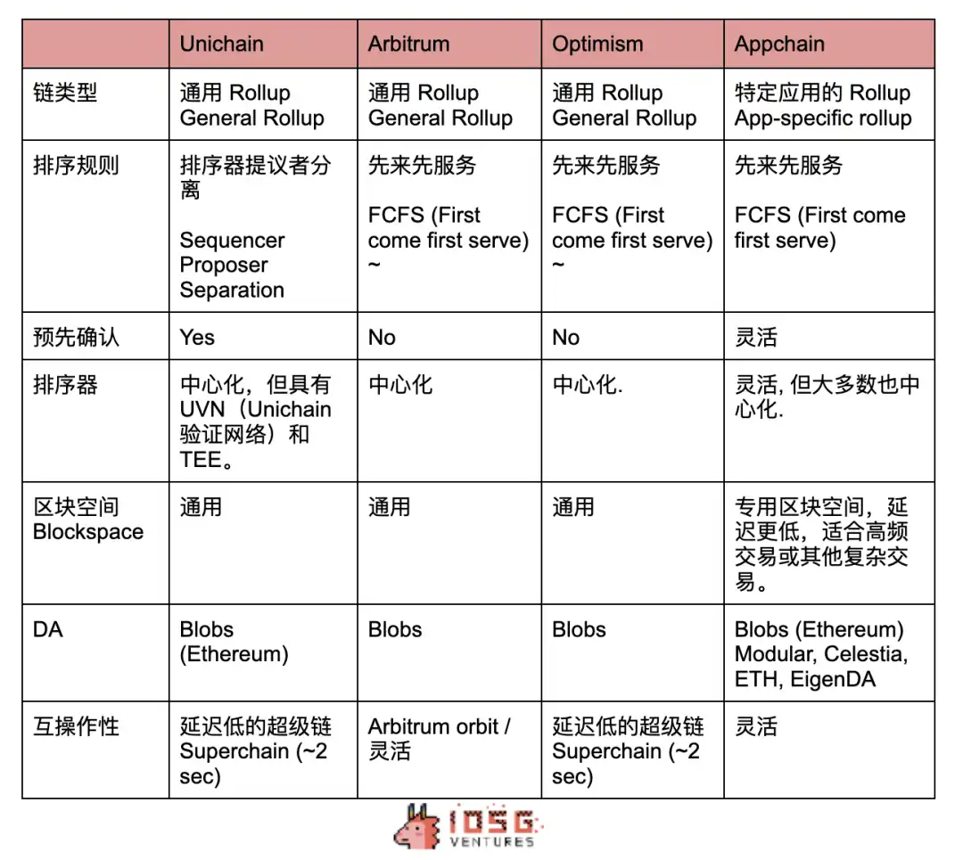 · Unichain/通用 Rollup 和应用链之间的主要区别因素是 MEV、预确认和区块空间竞争。