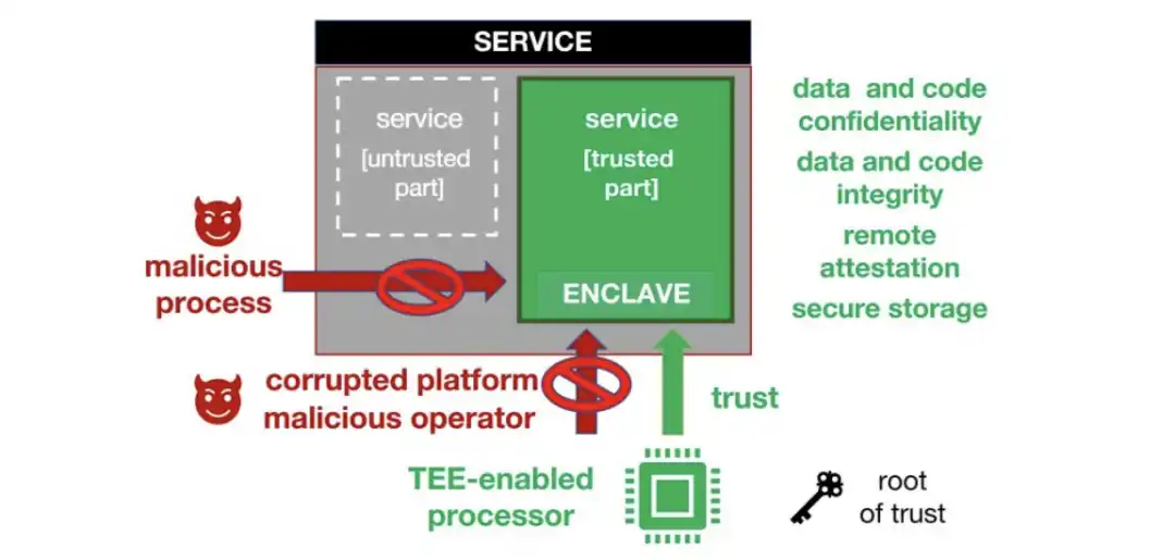 对于那些不熟悉 TEE 的人来说,它们是处理器或硬件内的安全区域,通过阻止未经授权的实体读取内部数据来提供增强的隐私。同时,TEE 保持高水平的完整性,因为 TEE 内的代码无法修改或替换。