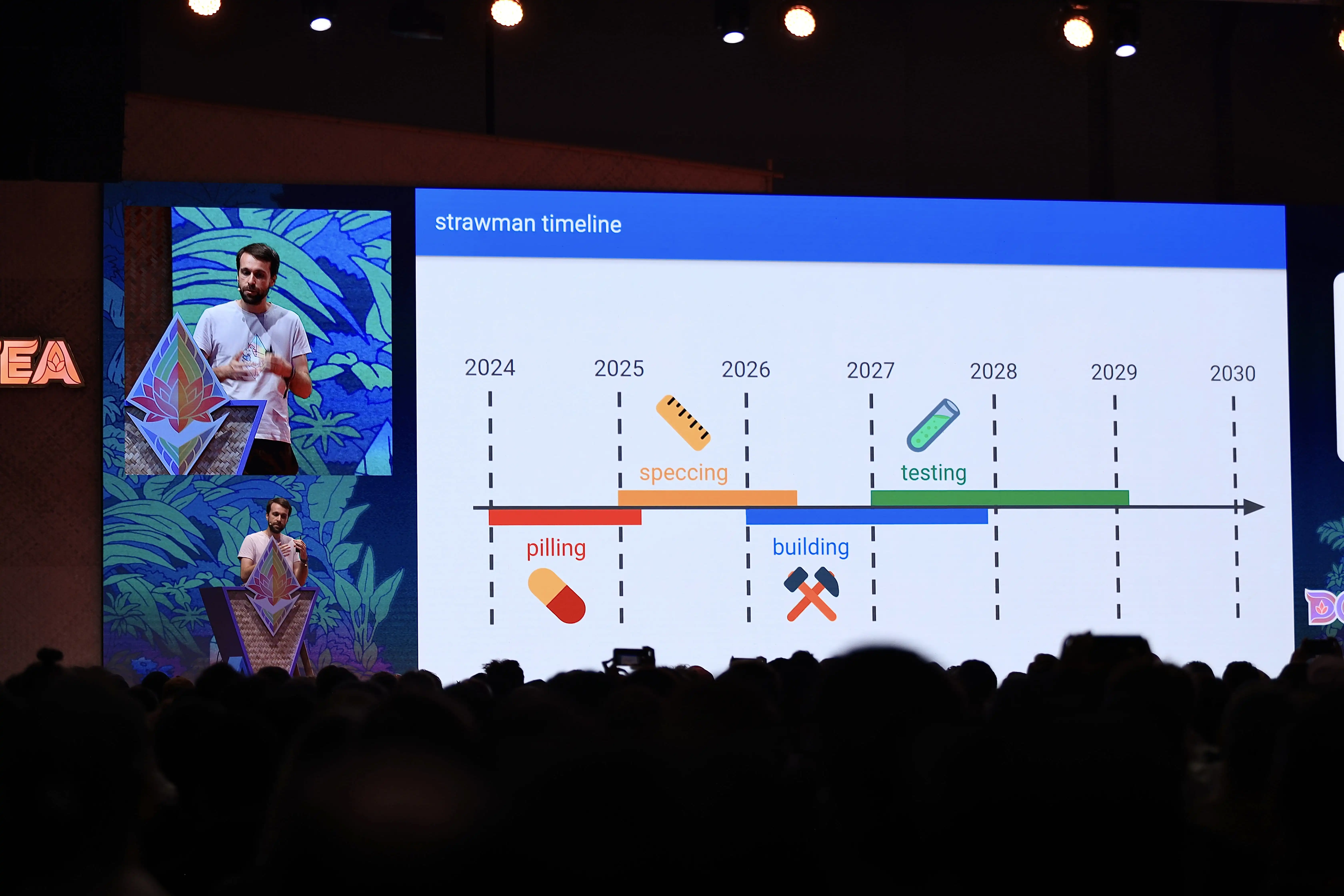 最后一部分,我想谈谈下一步和未来的展望。一个可能的结果是,从 2025 年开始,我们将进入规范化流程。这将由一小群研究人员进行,可能需要整个一年时间。2026 年,开发流程将启动,客户端团队开始编写生产级代码,接着在 2027 年进入非常彻底的测试流程,以确保安全性和生产部署的稳定性。