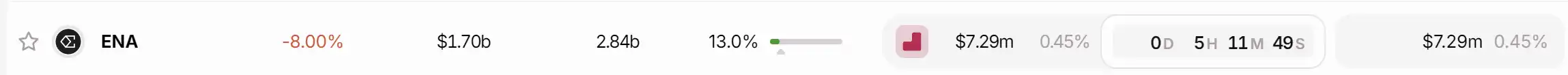 ENA 于今日解锁价值 729 万美金代币