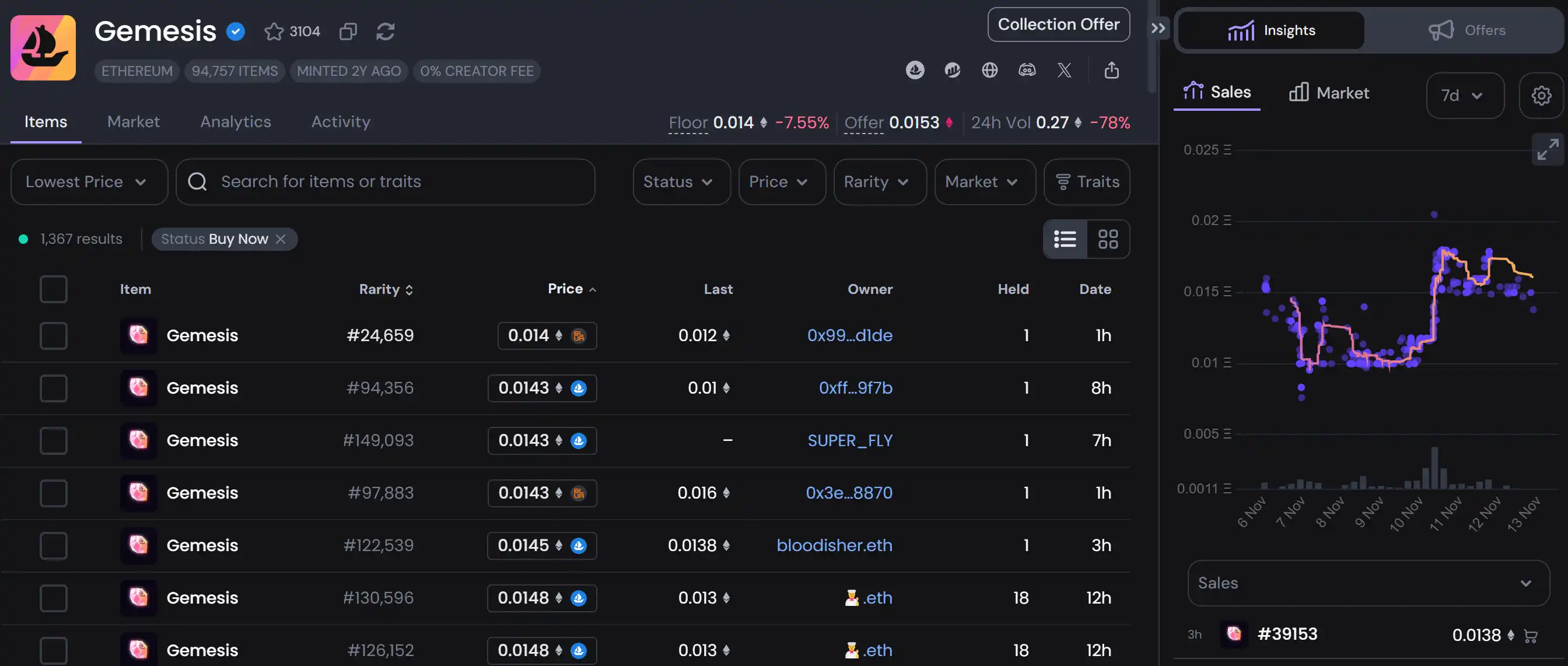 受此消息影响,OpenSea Pro 在去年 4 月针对 Gem 老用户发放的「Gemesis」NFT 系列在过去一周上涨了约 50%。
