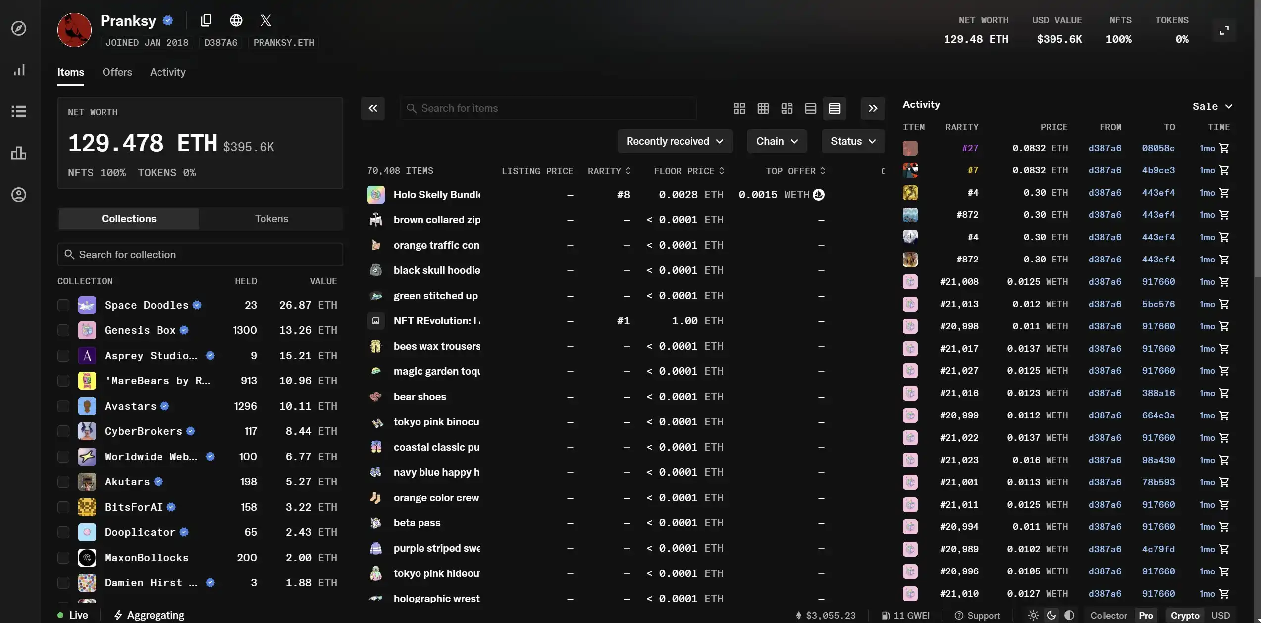 用户的个人页面不再像以前那样以展示用户持有的 NFT 为主,而是以展示用户的钱包活动为主。