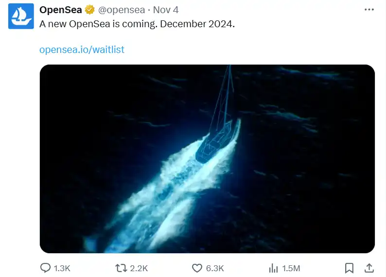在 11 月 4 日,OpenSea 官推宣布将在 12 月推出一个「全新的 OpenSea」,并且开放了一个用于登记测试地址的站点,至今已经有超过 70 万个地址在等候名单中。