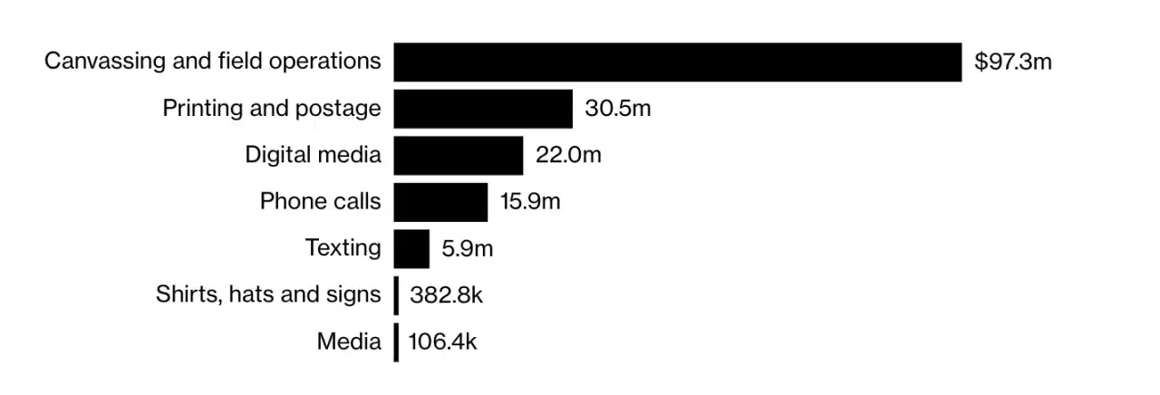 马斯克 PAC 的支出分类,资料来源:联邦选举委员会