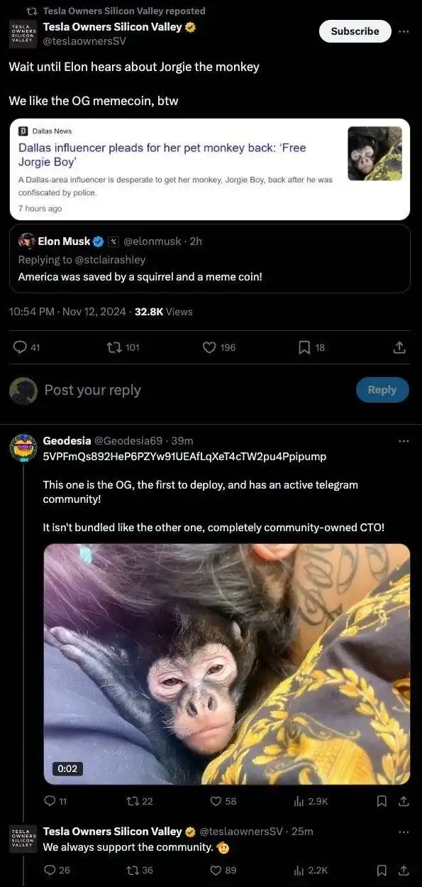 同时,在特斯拉车主社区,这件事也已被广泛讨论,有人也在发帖说希望马斯克能够看到关于 Jorgie 的故事。值得一提的是,这个特斯拉社区马斯克确实也在关注,但能不能回应猴子事件,谁也无法预料。