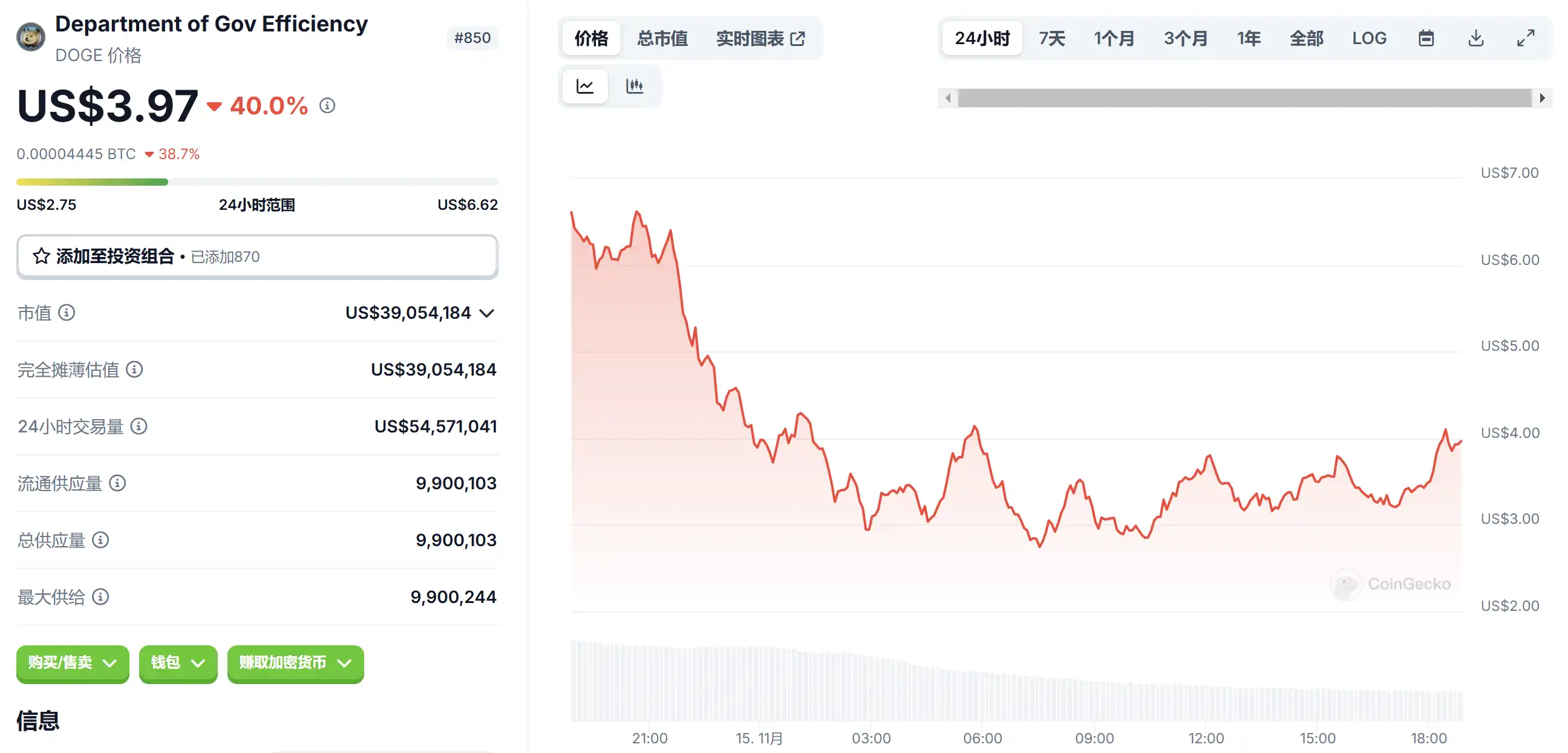 11 月 15 日代币波动情况,按交易量筛选并排列