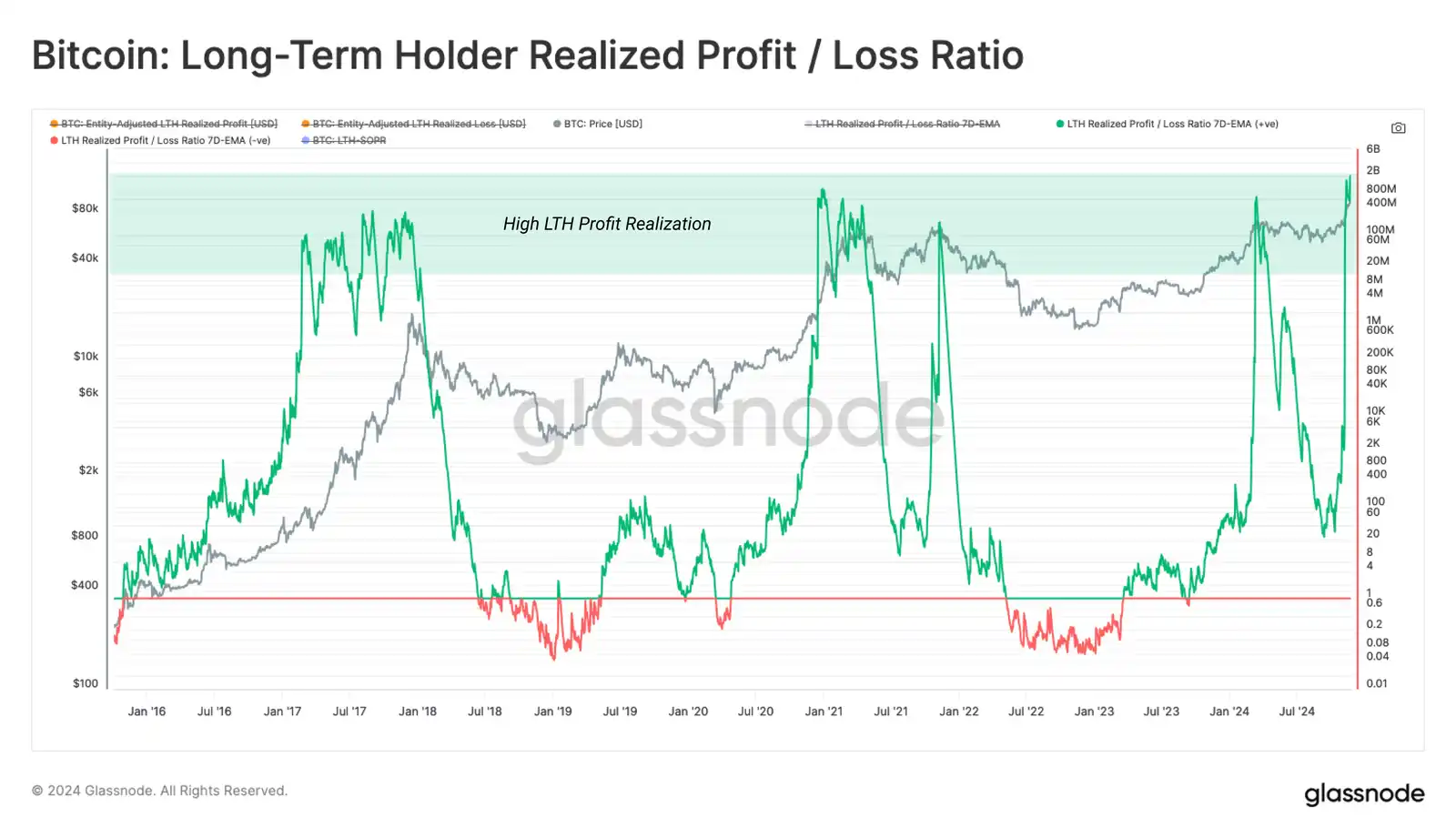 长期持有者在价格发现过程中发挥着关键作用,因为他们是先前休眠供应返回流动性流通的主要来源。随着牛市的进展,评估这一群体的获利回吐程度变得更加谨慎,因为随着价格上涨,他们往往变得越来越活跃。