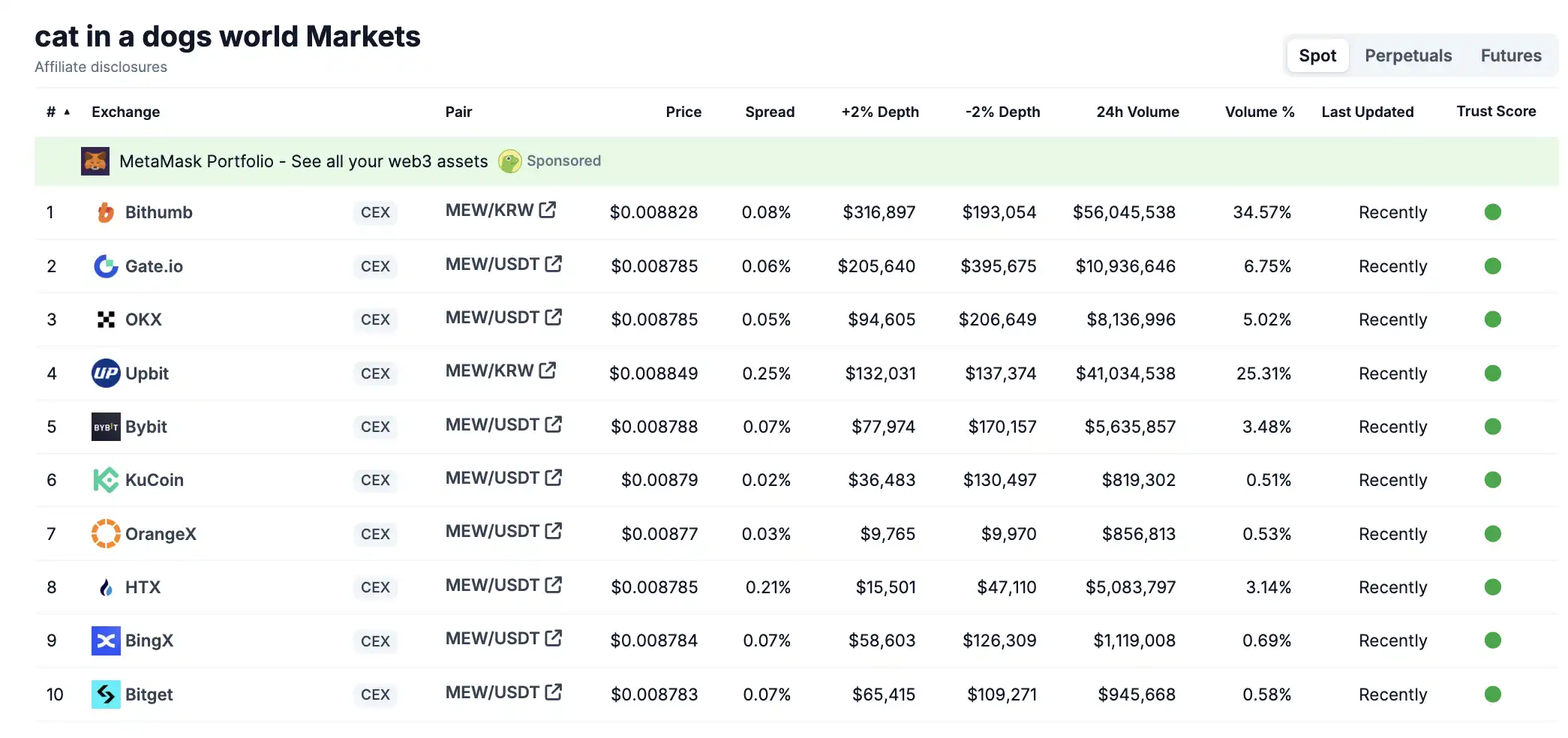 MEW 的 CEX 上线情况