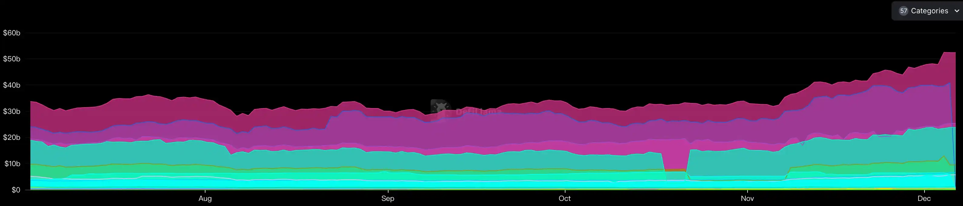Defi 各个赛道 TVL (数据来源:https://defillama.com/categories)